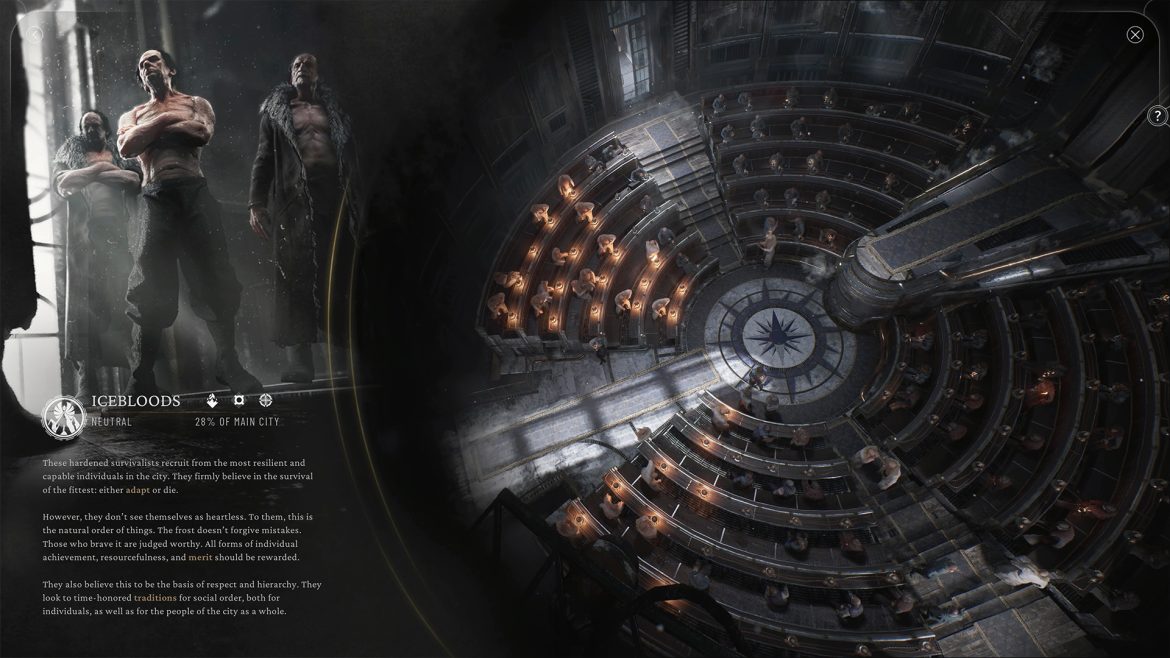I början är det svårt att bara hålla staden vid liv med tillräckligt med värme eller mat. Det är en kamp mot klockan och den annalkande snöstormen. Och när du väl har kontroll över dessa problem, kommer de mest intressanta delarna av spelet fram. Då börjar grupperna i din stad att framföra sina önskemål – de har sina egna idéer om hur staden ska utvecklas. Det är då förhandlingarna mellan de fyra olika grupperna i staden tar fart, och med varje beslut du fattar gör du någon av grupperna missnöjd. Målet är att försöka hålla alla fyra nöjda, om du vill. Friheten är enorm; du kan strunta helt i tre av grupperna och bara gynna din favorit. Men då kan kriminaliteten öka, eller så saktar arbetet ner i gruvorna. Det gäller att ha koll på allt och försöka få staden att fungera.