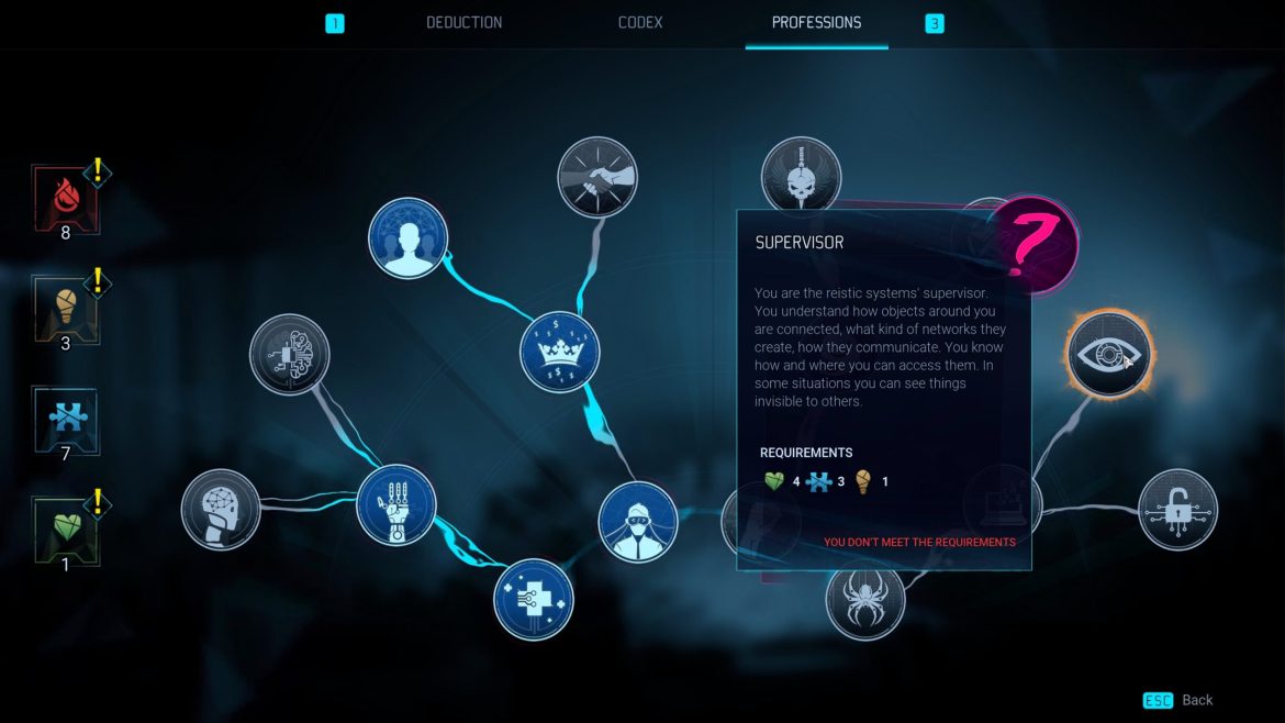 Varje val du gör (och det är mååååååånga) påverkar historien och vad personer runt omkring dig tycker om dig. När du förhör misstänkta så är det en hel vetenskap att hänga med på alla parametrar. Här ligger ett litet problem med Gamedec; till en början verkar allt så otroligt avancerat att göra minsta grej så jag höll nästan på att tappa sugen … men sedan hände något. När jag väl kom in spelet så insåg jag att det inte är så krångligt egentligen och som i ett trollslag blev Gamedec väldigt mycket roligare.