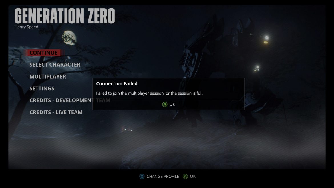 I likhet med Fallout 76 så är Generation Zero ett fruktansvärt tomt spel. Det finns inga karaktärer i spelet, förutom robotar och en och en annan online-spelare. Under mina timmar så mötte jag två stycken andra spelare och när vi blev tre stycken så kickade spelet ut mig för att vi blev ”för många”.