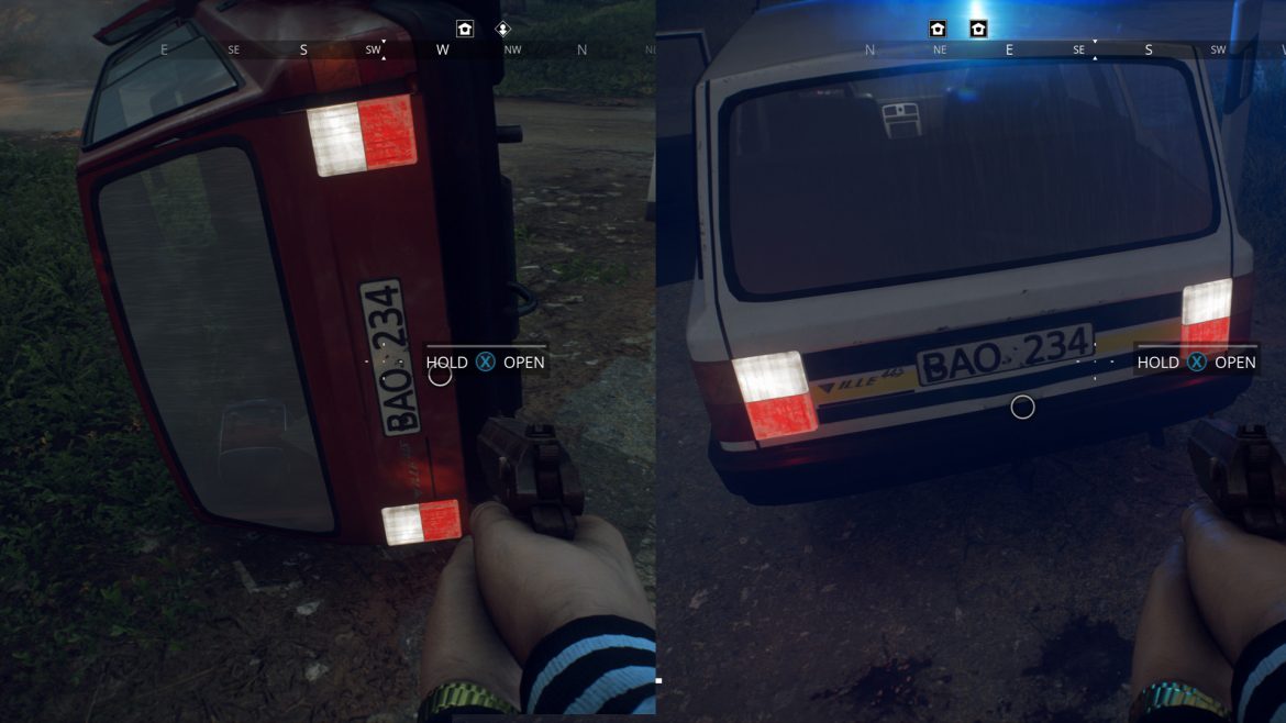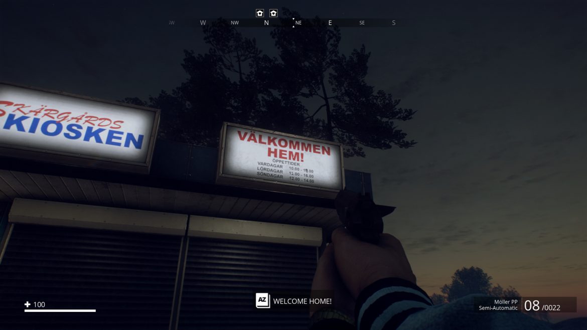 Sen kommer du in i själva spelet och till en början är det verkligen wow! Riktigt snyggt, välproducerat och… vänta nu… Registrerings-plåtarna på bilarna är ju exakt likadana, kiosken – som stod nere vid hamnen – dyker upp i exakt samma skepnad längre in i spelet, med exakt samma skyltar som önskar dig ”Välkommen tillbaka”. Insidan av husen är på flertalet ställen på pricken likadana. Sekunden som jag börjar skrapa på den supertunna ytan så inser jag att det här är ganska uselt egentligen. Allt ser vansinnigt snyggt ut, på håll. Skogarna, husen och alla detaljer är väldigt skickligt gjorda – men spelskaparna har ju återanvänt samma textur om och om igen, så det blir istället en enda lång upprepning.