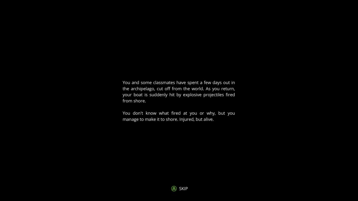 Varningsklockorna började dock klämta när jag startade spelet och istället för ett coolt, snyggt intro så får jag läsa en rulltext som berättar vad min karaktär har gjort innan han kommer till ön i skärgården. I Mutant Year Zero, som också är ett spel med inte en så superhög budget, så löste de i alla fall sina cutscenes med animerade stillbilder och ljud, men i Generation Zero blir det inget sånt, utan det blir en vit, tråkig rulltext på svart botten…s