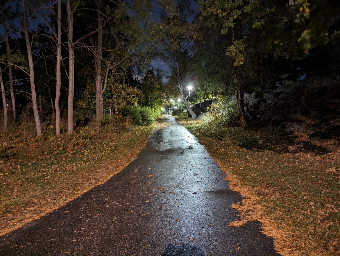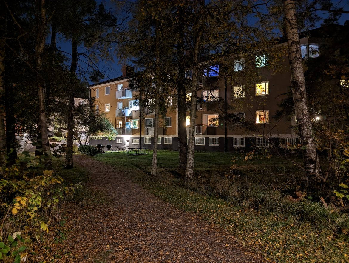 Något som Pixel-telefonerna traditionellt har varit bra på är att ta bilder i mörker, genom att ta flera bilder, några med längre slutartid, en hel del beräkningar och sen lägga ihop bilderna får man ett väldigt bra resultat. Nackdelen har varit att det tar 5-6s att ta bilderna, nu med Pixel 7 pro så går det betydligt snabbare.