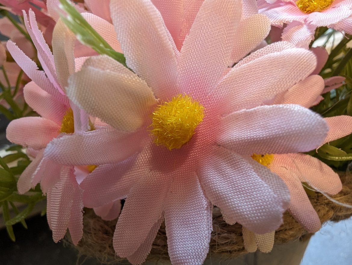 Vidvinkelobjektivet har autofokus och används vid makrofoton. Kommer man tillräckligt nära så slås det läget på per automatik (men går att stänga av) och man kan komma så nära som 3 cm och ändå få skärpa. Nedan är en bild så nära vi kunde komma på en av kontorets plastväxter.