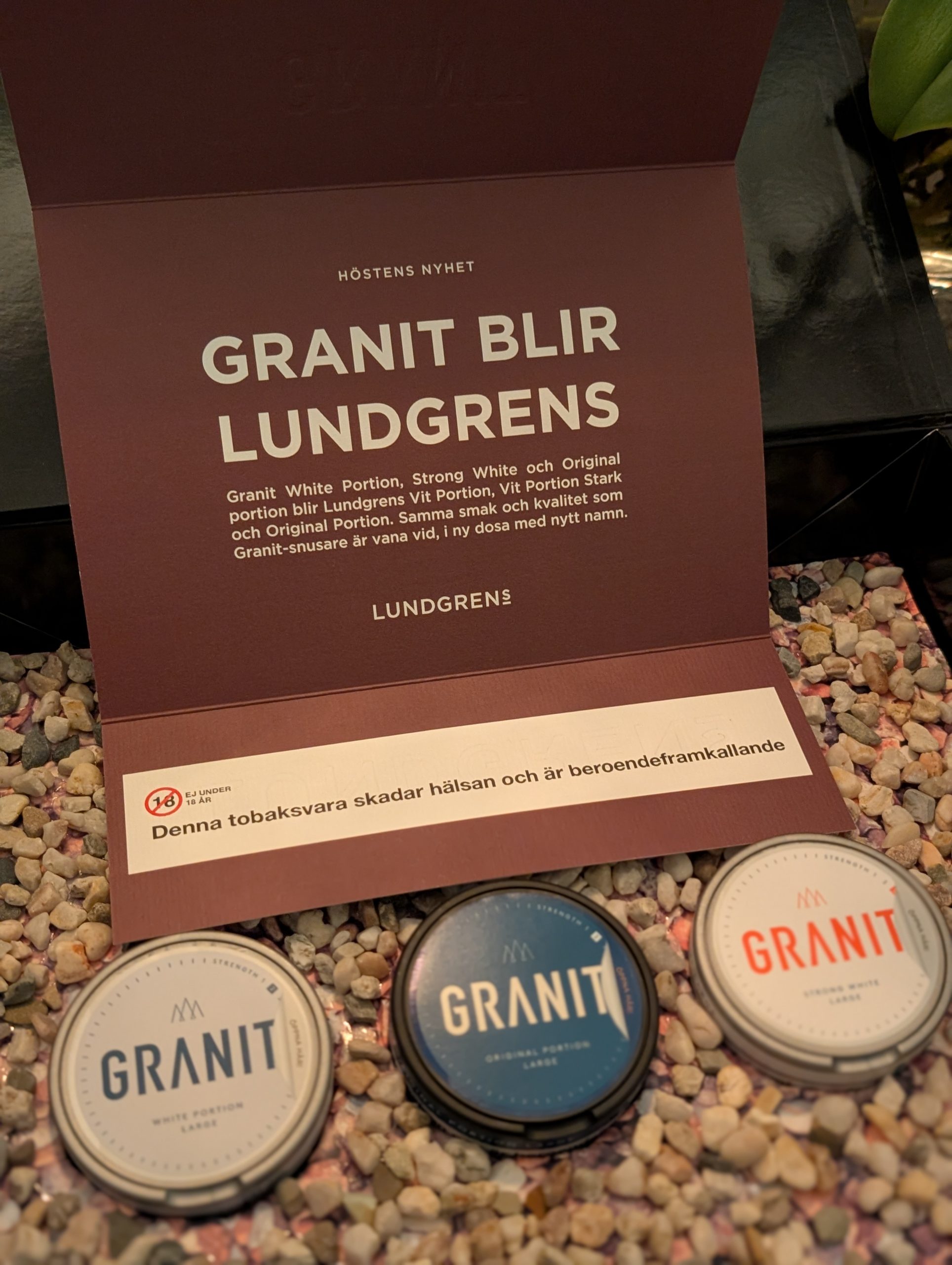 Bakgrunden till namnbytet är ett strategiskt beslut där man samlar sortimentet under ett starkare och mer sammanhållet varumärke. Lundgrens är redan välkänt bland snusanvändare, och genom att låta Granit bli en del av Lundgrens-familjen skapas en tydligare identitet utan att tumma på innehållet. För dig som använt Granit Original, Vit eller Vit Stark innebär det alltså att du kan fortsätta köpa ditt favoritsnus – fast i en ny dosa.