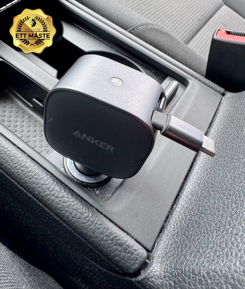 Sommar för oss innebär en hel del bilåkning, dels runt Sverige att hälsa på familj och vänner, men även trippar till sommarstugan och roliga besöksmål med barnen, såsom nöjesparker. Anker Nano Car Charger 75W är en sylvass produkt, som genom cigg-uttaget på bilen ger dig upp till 75W effekt, beroende på vad din pryl klarar av att ta emot. Den laddar en modern iPhone med USB-C i ett nafs och likaså andra produkter, såsom plattor och hörlurar. En omistlig pryl att ha i bilen och väl värd den röding den kostar. Stort plus för den utdragbara kabeln som är inbyggd och lätt rullas in i igen.