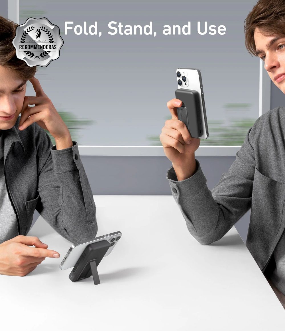 Anker 633 Magnetic Battery har vi tidigare tävlat ut under våren. Detta är en smart, magnetisk powerbank med MagSafe som laddar din kompatibla iPhone. Smidig och med inbyggd, utfällbar fot. Runt en femhundring får du ge för den.