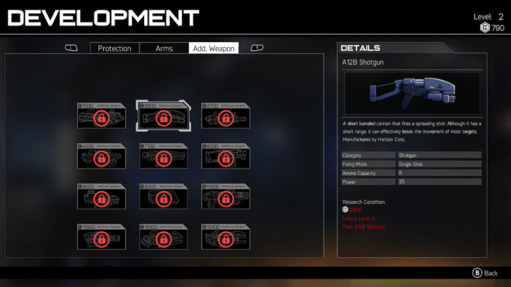 Varje Mecha har sina egna speciella förmågor och färdigheter vilket bidrar till känslan av omväxling. Sen finns det massor av olika vapen att hitta och köpa utöver det.
