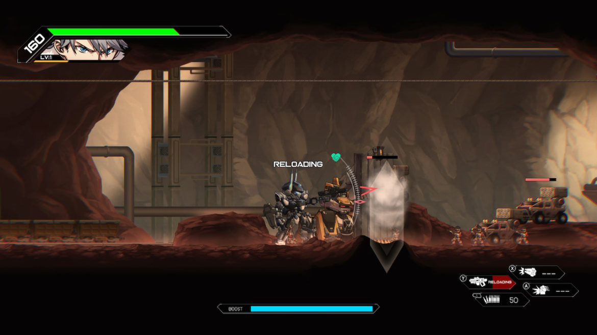 Hardcore Mecha - RocketPunch Games - Screenshot Switch - copyright 2020