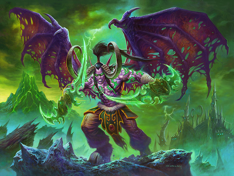 En ny klass, i form av Demon Hunter:n Illidan, introduceras också. Han är druiden Malfurions förlorade bror, som vänt sig till mörkret men genom ett dubbelspel istället blir dess nemesis. Hans hero power kostar bara 1 mana och låter honom anfalla med 1 i styrka. Men den kan även kombineras med vapen, för ett extra potent anfall. Här införs även konceptet Outcast, där ett kort som spelas från positionen längst ut i handen får en bonus-effekt.
