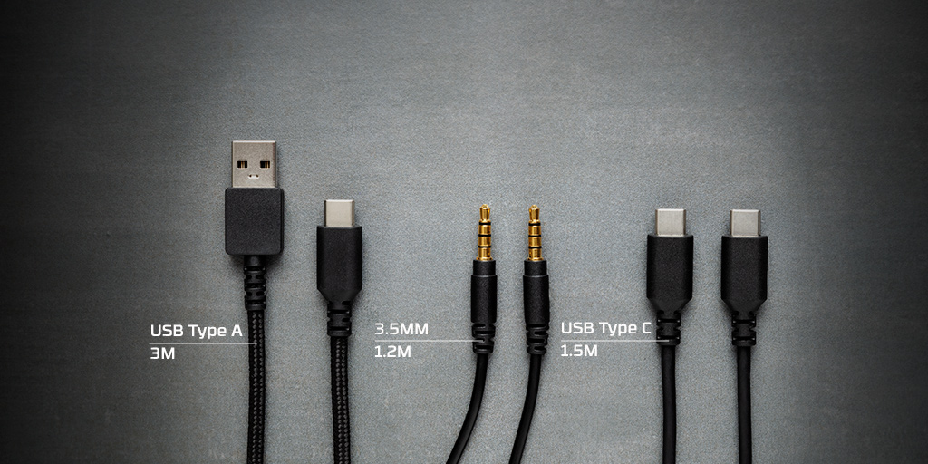 Du kan välja att koppla in Orbit S på vilket sätt du vill – utom trådlöst. Det är en funktion som skalats bort här, men som alltså finns på Audeze Mobius för 350 kr extra. Eftersom lurarna helt saknar Bluetooth så är det bara trådad inkoppling som gäller. Nu har vi inte testat Mobius, så därför är det svårt att säga om det är något annat än det som skiljer – men spontant är känslan att ett trådlöst alternativ skulle vara värt de 350 kr extra på denna prisnivå. Hursomhelst, avsaknaden av Bluetooth är ingen dealbreaker på gaming-lurar, eftersom man oftast sitter nära datorn, skärmen eller har spelkontrollern i handen (och spelar du Switch får du en lååååång USB-kabel att koppla in i dockan – eller till stationära datorn på golvet, smart att HyperX tänkt på det!). Lurarna har USB-C-anslutning, som väntat, och funkar prima med USB-C, USB-A-till-C-konvertern (den långa kabeln) eller 3,5 mm-klassisk, analog. Anslutningen du väljer begränsar dock Orbit S olika ljudlägen och funktioner.