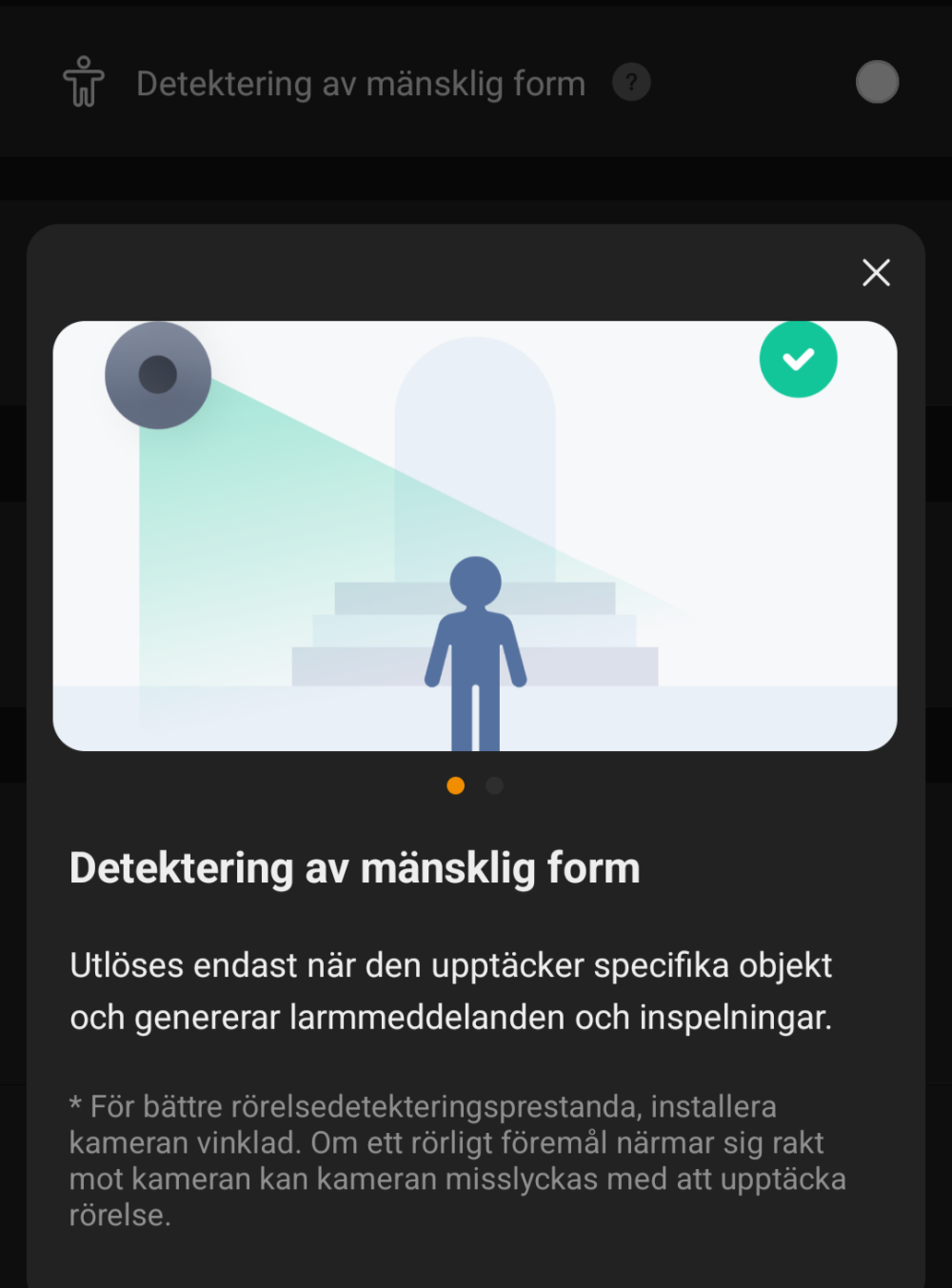 Doorbell 2S använder en kombination av PIR-sensor och AI-baserad persondetektering, och det fungerar för det mesta bra. I praktiken är det en grym funktion som ska minska notisspam från djur, bilar och löv som blåser förbi. Det som jag har problem med under testet är att den ibland skickar en notis om att det står en cykel parkerad framför kameran, och ja, det gör det, men den stod där innan också, så ibland så verkar det som att den känner av någon rörelse, kanske av blåst eller liknande, och så märker den att det står en cykel parkerad där, fast den redan har sagt till om det.