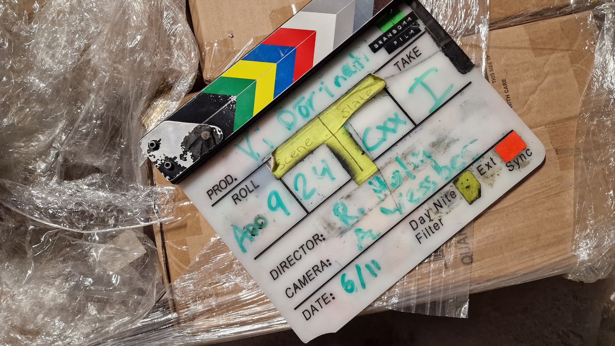 Regiassistenten Robin Sherlock Holm ber om tystnad och kameran rullar.