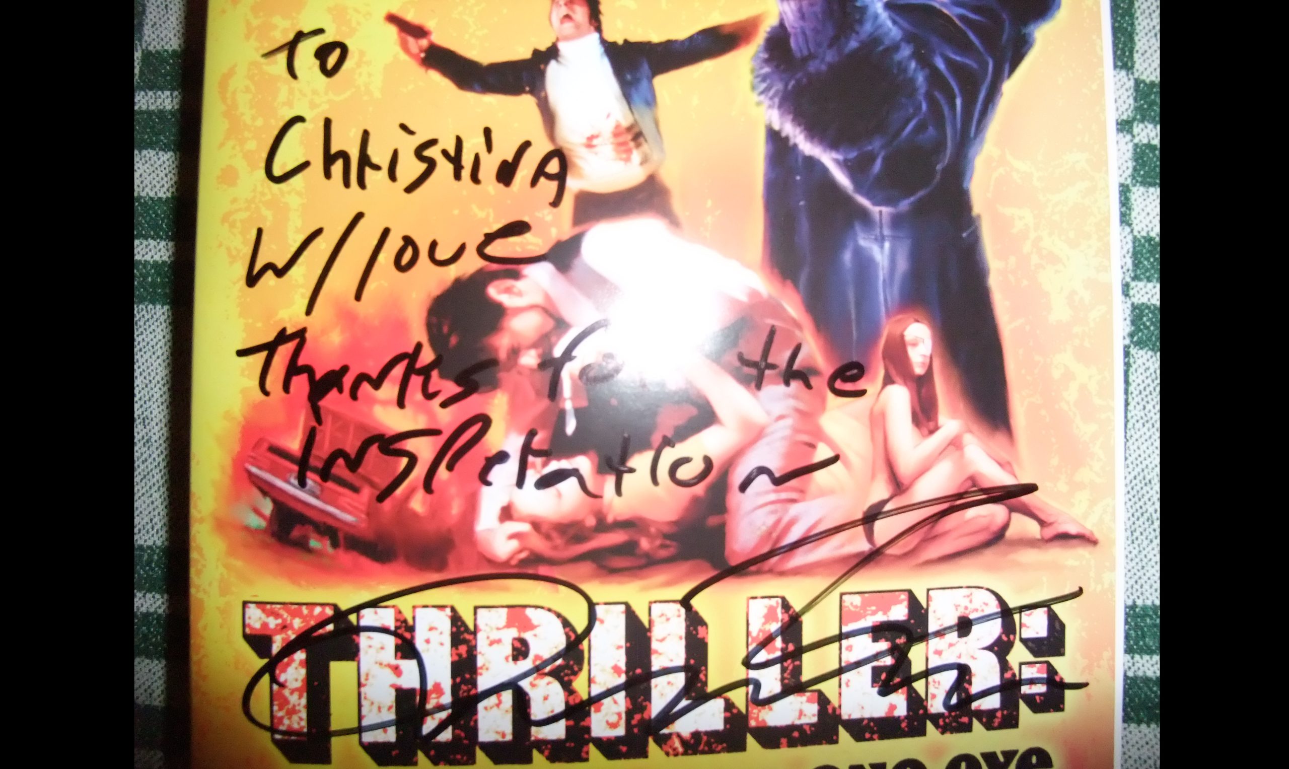 –”Det verkade som han var tagen av stunden. Nästan som om han fått träffa sin idol”. Och så var det kanske, skrattar Christina och plockar fram ett ex av den amerikanska dvd-utgåvan av Thriller. På omslaget har Tarantino skrivit; ”Till Christina med kärlek. Tack för inspirationen” och ”Jag är ditt största fan”.