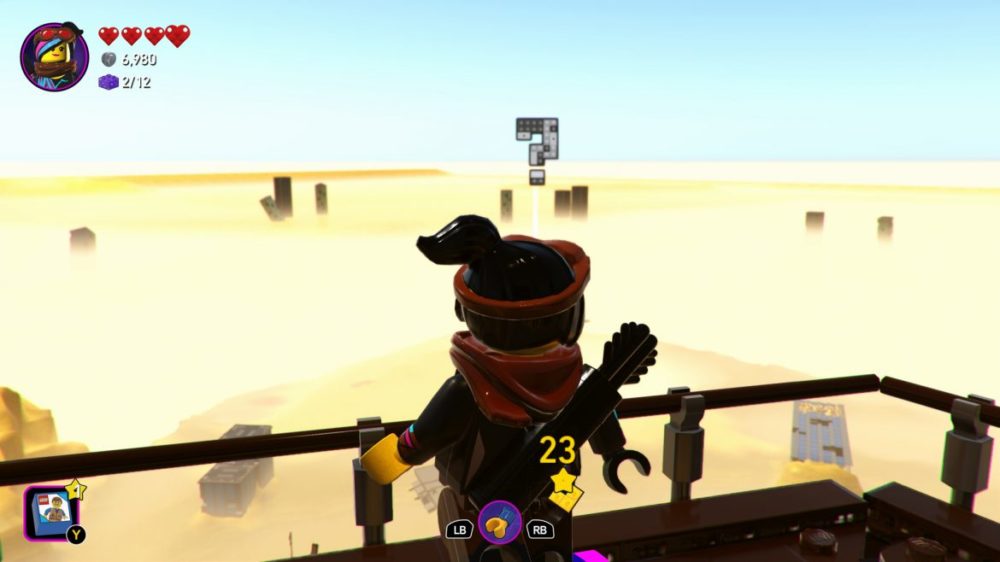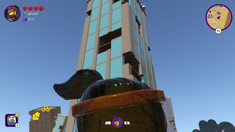 Det finns en sak som skiljer The LEGO Movie 2 Videogame åt från de andra LEGO-spelen som jag recenserat och det är att allt i spelet är byggt av legobitar. Det finns inga verkliga ytor alls, som i till exempel DC LEGO Super Villians eller i LEGO Ninjago Movie Videogame. Fast det betyder inte att spelskaparna inte behöver ljussätta spelet snyggt och intressant. För att ytterligare hacka på den daterade grafiken så är det fruktansvärt tomt i bild. Se nedan på hur man har löst att slippa ha någon som helst info i bild med hjälp av dimma.