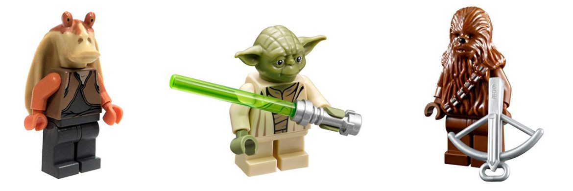Jar-Jar Binks minfiguren var den första med ett unikt skulpterat huvud, Yoda, Ewokerna och Boba-Fett som barn var de första minifigurerna med korta ben. Det tog design-teamen ett bra tag att knäcka nöten hur de skulle modellera Chewbacca, men sen kom de på idén att skapa ett huvud som är modellerat med päls på ryggen och bröstet. En lösning som har använts på många andra figurer sedan dess.
