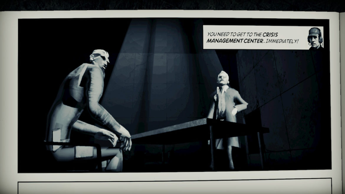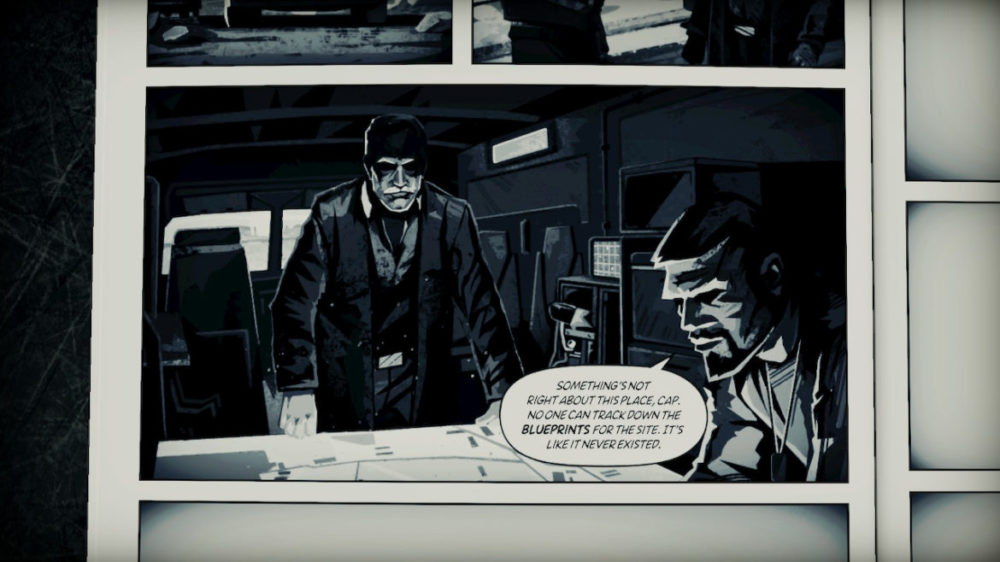 Direkt när man startar spelet så möts man av den snygga svartvita noir serietidnings-känslan, som verkligen ger peppar inför spelet. Det är välskrivet och intressant. Röstskådespelarna är helt okej, men ibland känner man av deras något limiterade kunskaper när det kommer till mer känslomässiga scener. Historien vecklas ut framför våra ögon och det tar ett litet tag innan jag inser att jag har ju faktiskt inte spelat något än. Bara läst en interaktiv serietidning. Sen – efter vad jag känner är en evighet – så kommer vi till första spel-sektionen.