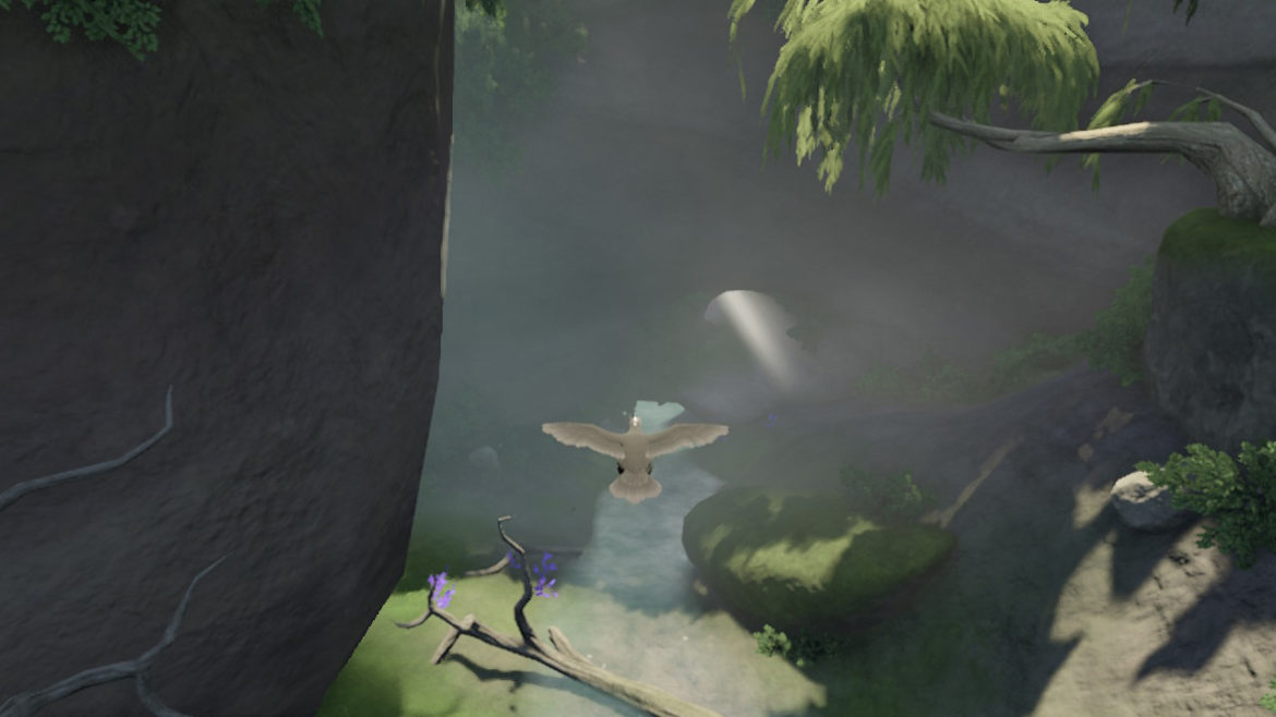 Vi styr vår varg över en gigantisk karta med vacker natur. Ska man vara lite petig så är grafiken ganska kantig, men det är något jag snabbt glömmer av när jag börjar komma in i storyn. För att nå vissa platser kan vi dock inte längre vara en varg utan då kan vi ta över formen från andra djur som finns i närheten. Att kunna flyga över landskapet, fri som en fågel, är verkligen synnerligen meditativt.