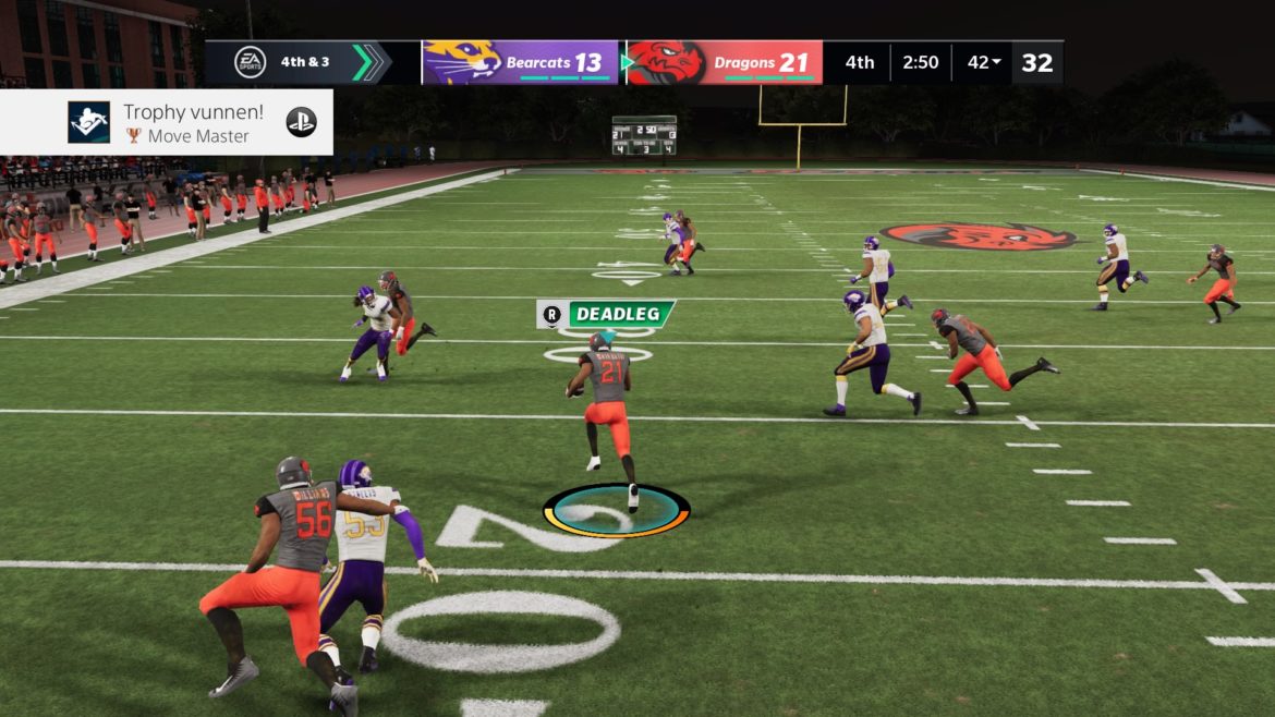 Trots att grafiken ser bättre ut när kameravinkeln är vid (längre ifrån), och att kontrollera spelare i match är hyfsat lätt så är det för många saker att hålla koll på för att kunna njuta av att spela. Spelet laggar otroligt mycket på en bas-PS4:a, speciellt vid ”Field Goal och ”Kick Off”, vilket gjorde att jag missade många poäng och hamnade i ett mycket sämre läge på planen. Jag spenderade även fyra timmar utspritt på två dagar för att försöka återansluta till EAs server, då den kopplade bort mig och kraschade konstant.
