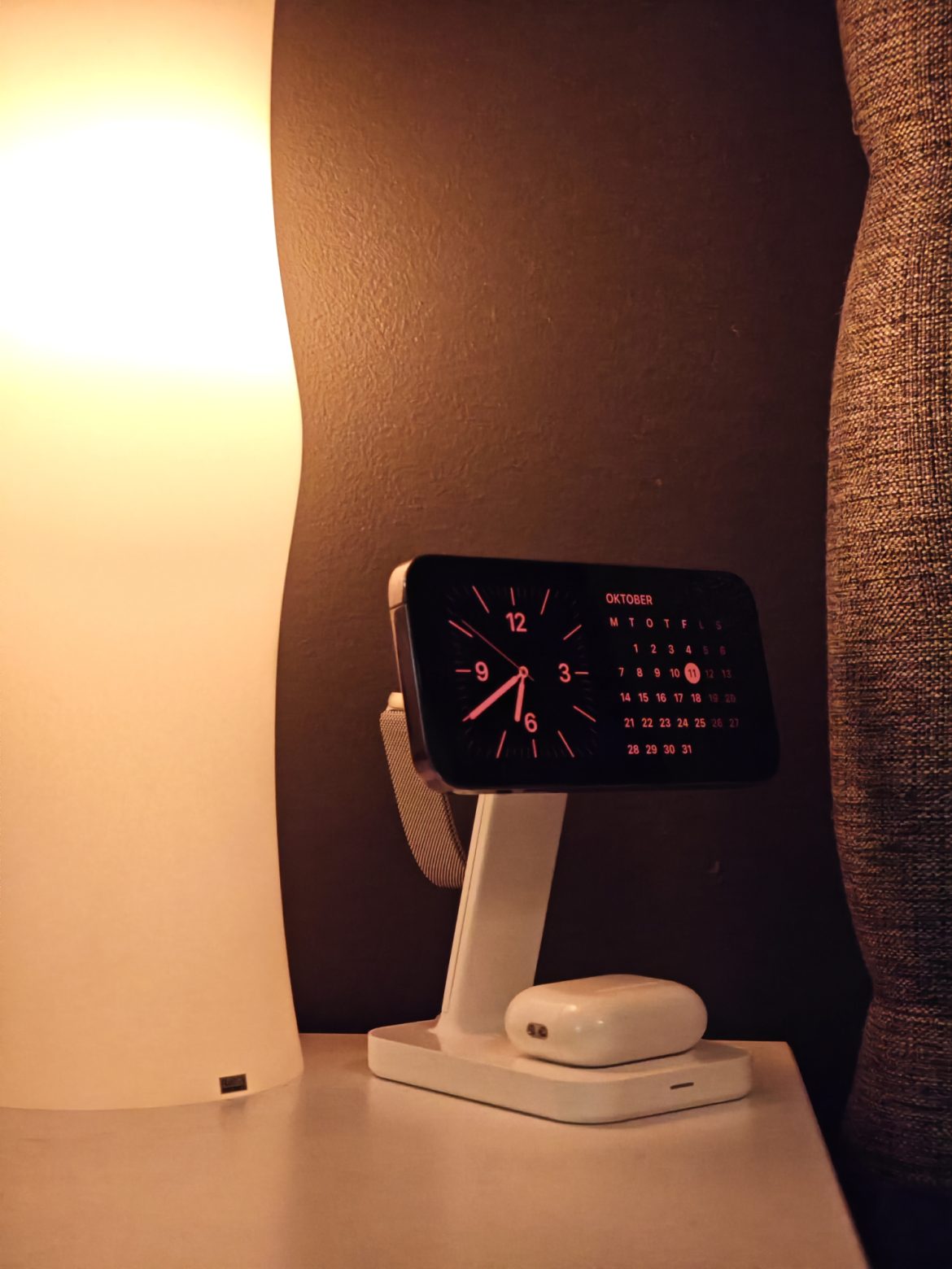 Telefonen fäster magnetiskt mot huvudytan och för er som kör Apples Pro-versioner av iPhone kan således nyttja always-on funktionen med kalender och tid. Är du en kvällstittare blir ställningen perfekt för filmen eller serien innan det är dags släcka ned. Och samtidigt laddar den.