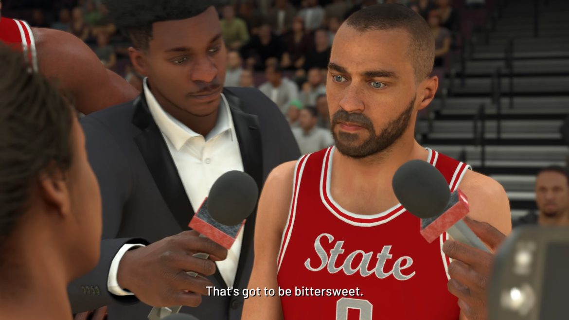 Jag föredrar att spela spel där jag har en historia att följa, så började jag med ”My career mode” där man – likt Madden 21 – får börja sin resa i high school där man blir övertalad av baskettränaren att hoppa av amerikansk fotboll (!) för att gå med i basketlaget istället. Grunden till denna historia är att du är son till en känd, numera avliden, basketspelare och ska försöka att leva upp till hans namn. Historian i sin helhet är dock lite klen då man hoppar från minnen där man tränar med sin framlidne far, till nutid där det mest handlar om att försöka ”överleva” pressen av media och att man har relationsproblem med sin flickvän. När man väl blir draftad till NBA så väljer spelet att avsluta hela historian och vi får tyvärr inte något ordentligt avslut på den.