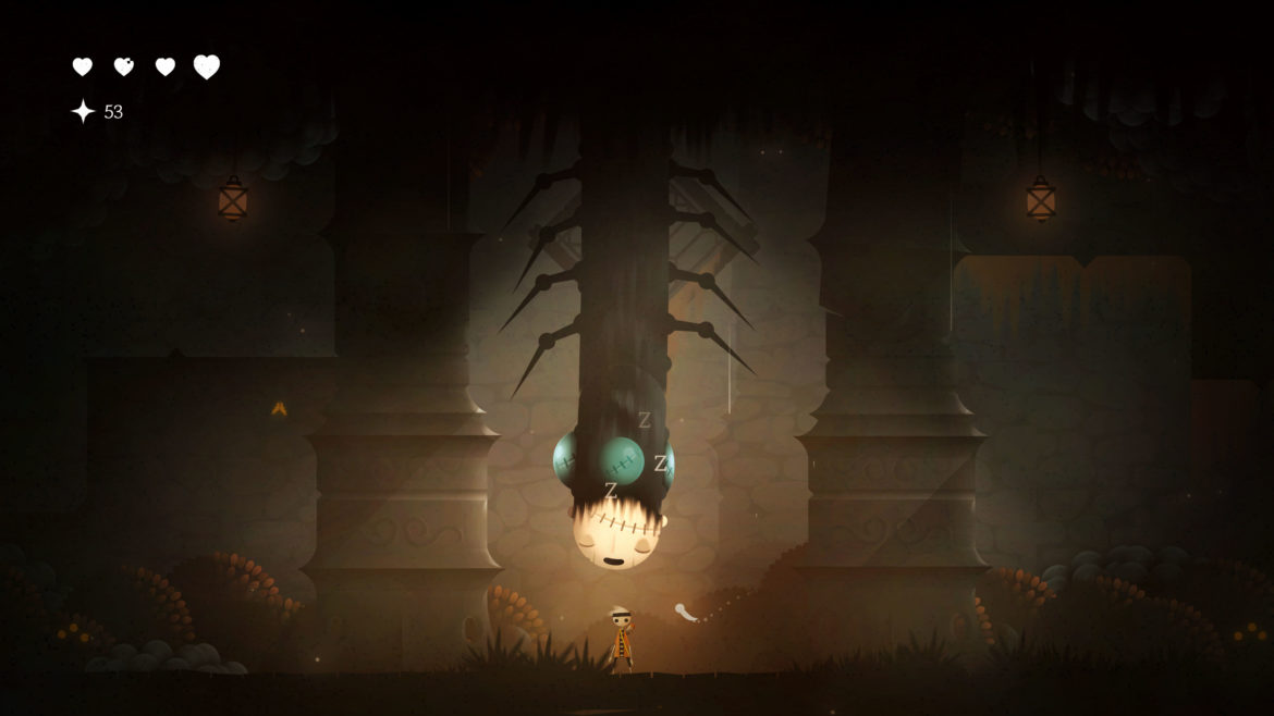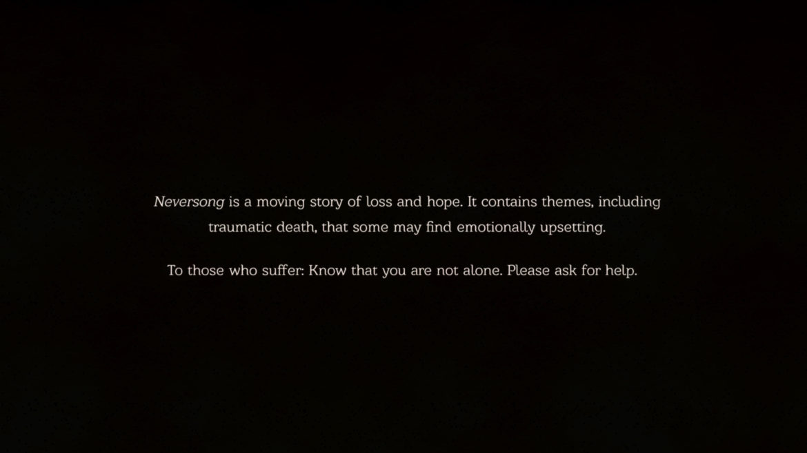 Neversong sparar inte på krutet, utan går direkt in i mardrömsk och kuslig stämning från första sekund. Musiken, ljudeffekterna och rösterna skapar en gnagande oroskänsla och ingenting är riktigt som det verkar. Karaktären styr du genom riktigt snygga handgjorda banor – men jag hade nog sett att de hade kunnat animera vår avatar lite bättre för det blir lite South Park över hans stela hopp och rörelser. När vi senare kommer in lite mer i spelet så glömmer man av det och är investerad i pusslen och storyn.