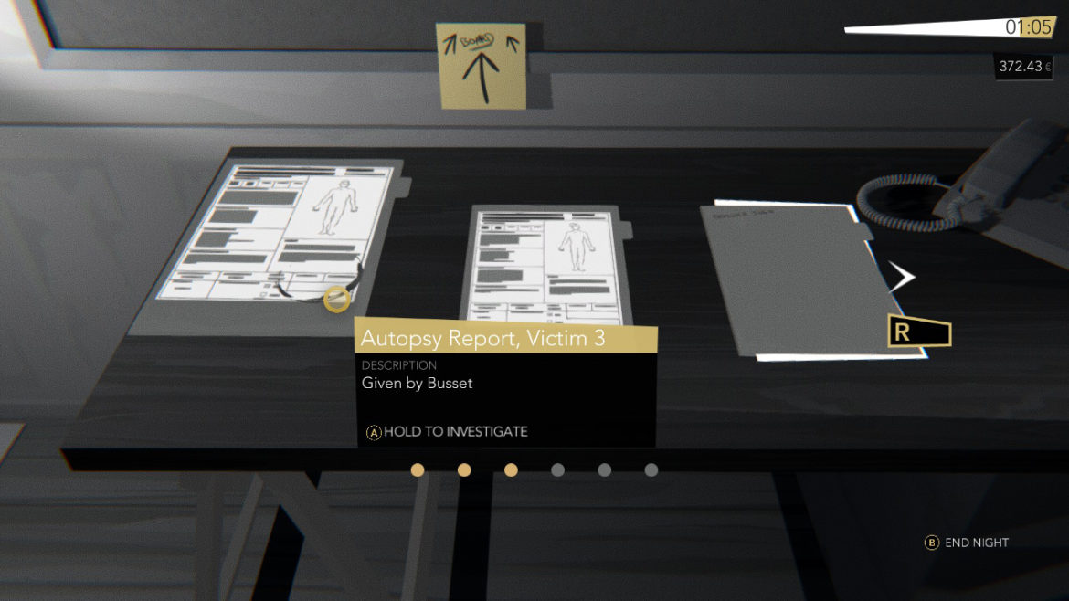 De personer du plockar upp ger dig ledtrådar till din mordutredning och när du väl är hemma igen så för du upp informationen på en tavla i ditt hus. När du har tillräckligt med information får du en fråga om du kan peka ut mördaren. Lyckas du så vinner du och kan fortsätta, misslyckas du så är spelet slut. Tyvärr så är det inte helt lätt att hålla allting i huvudet och försöka få någon rätsida på all information. Så det var till slut mer tur än skicklighet att hitta mördaren, tyckte jag.