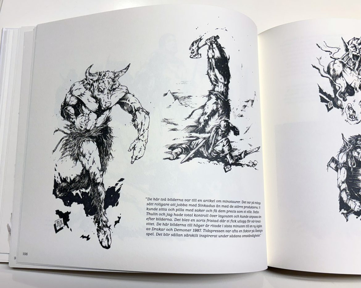 Orvar Säfström är författaren och jag märker tydligt att han, precis som jag, är ett stort fan av Gulliksson. Texten är personlig, lättläst och intressant rakt igenom. Vi får följa med på Gullikssons resa som illustratör från hans egna små projekt till hur han blev en ikon inom rollspelsvärlden.
