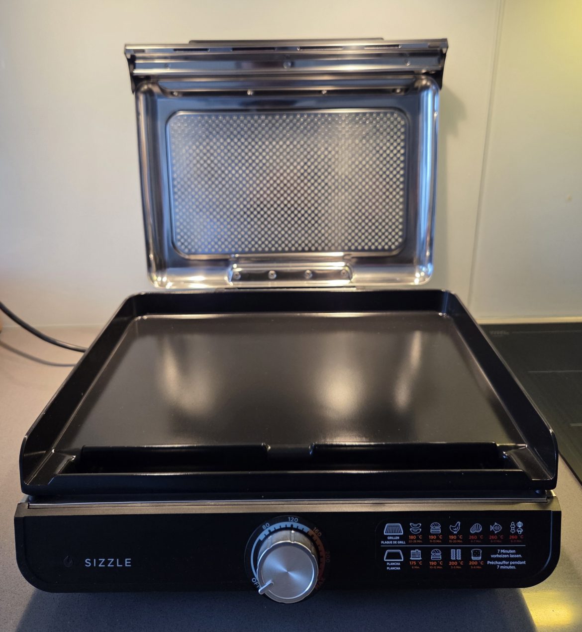 Allteftersom blir Sizzle givetvis smutsig och vi märkte då att rengöringen blir central för att slippa en rejäl rökutveckling när du drar igång den igen. Bekvämligheten med att låta den stå på, om man får för sig att lägga på ett ägg till, blir en nackdel när fett och matrester diskret torkar in i ytan. En del gnuggning blev det men sedan var den som ny.