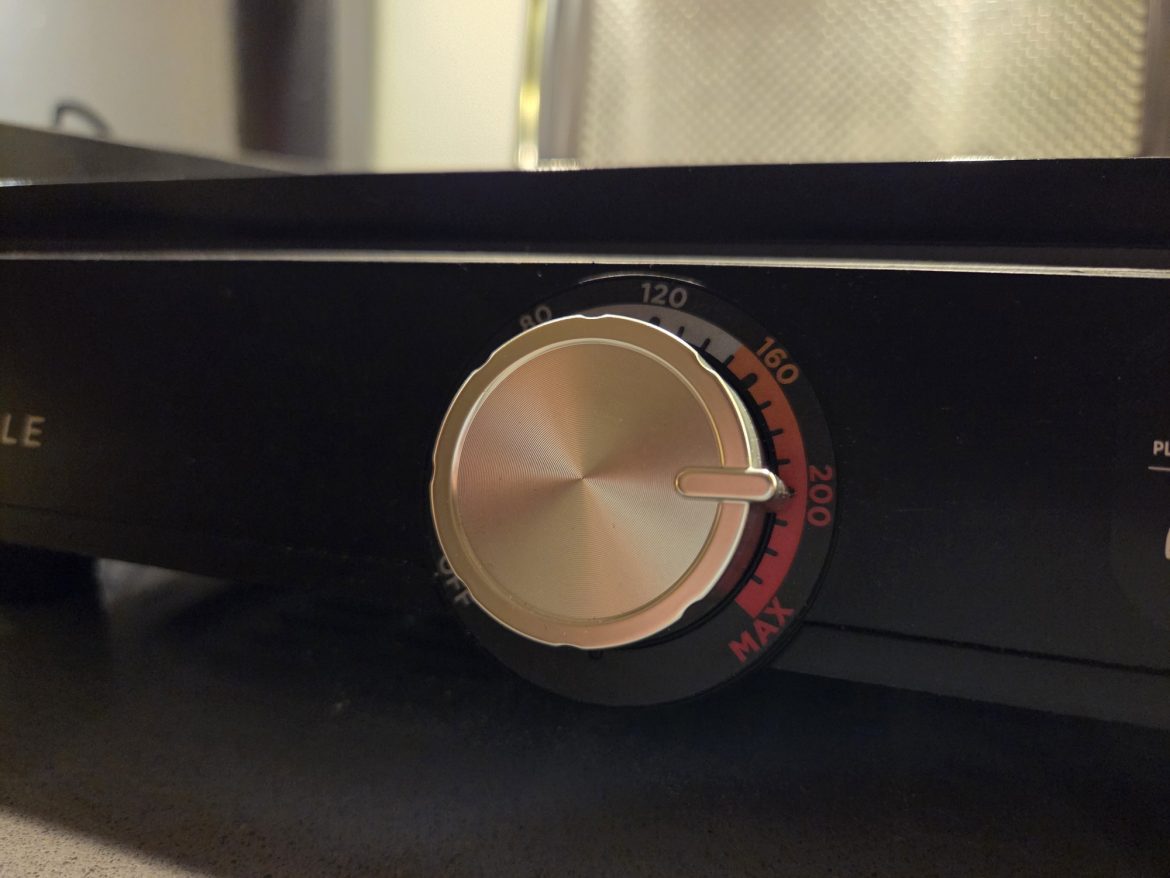 Egentligen handlar det om ganska få saker. Du runda mekaniska knoppen är ganska oexakt. Givetvis får man ställa sig frågan om det spelar så stor roll om det är 190 eller 195 grader. Eller kanske till och med 200 grader. Men det hade ändå varit ganska trevligt med digitala knappar som berättade exakt vad du ställt in den på. Och i samband med det hade det varit trevligt med en indikator som berättar att önskad temperatur är nådd, eller framför allt bibehållen. Vi har märkt hur Sizzle ibland har kommit upp i temperatur och sedan liksom tappat fokus, dvs säga inte riktigt håll värmen uppe. I vår värld skulle det inte behöva vara mer avancerat än att den röda lampan, som visar att den är på, skulle varit orange vid uppvärmning och röd när det är dags att köra.