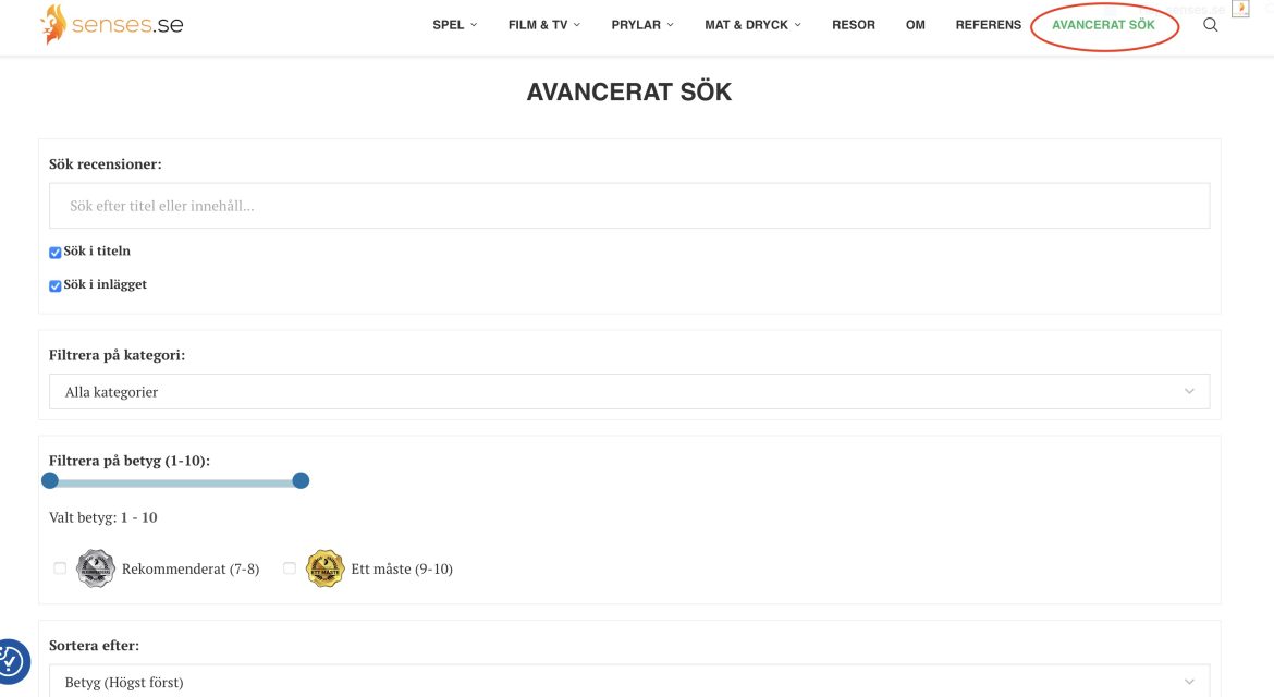 Ni har önskat och vi har lyssnat – nu finns, förutom det vanliga snabbsöket via förstoringsglaset uppe till höger i menyn, även en Avancerad sökfunktion på senses.