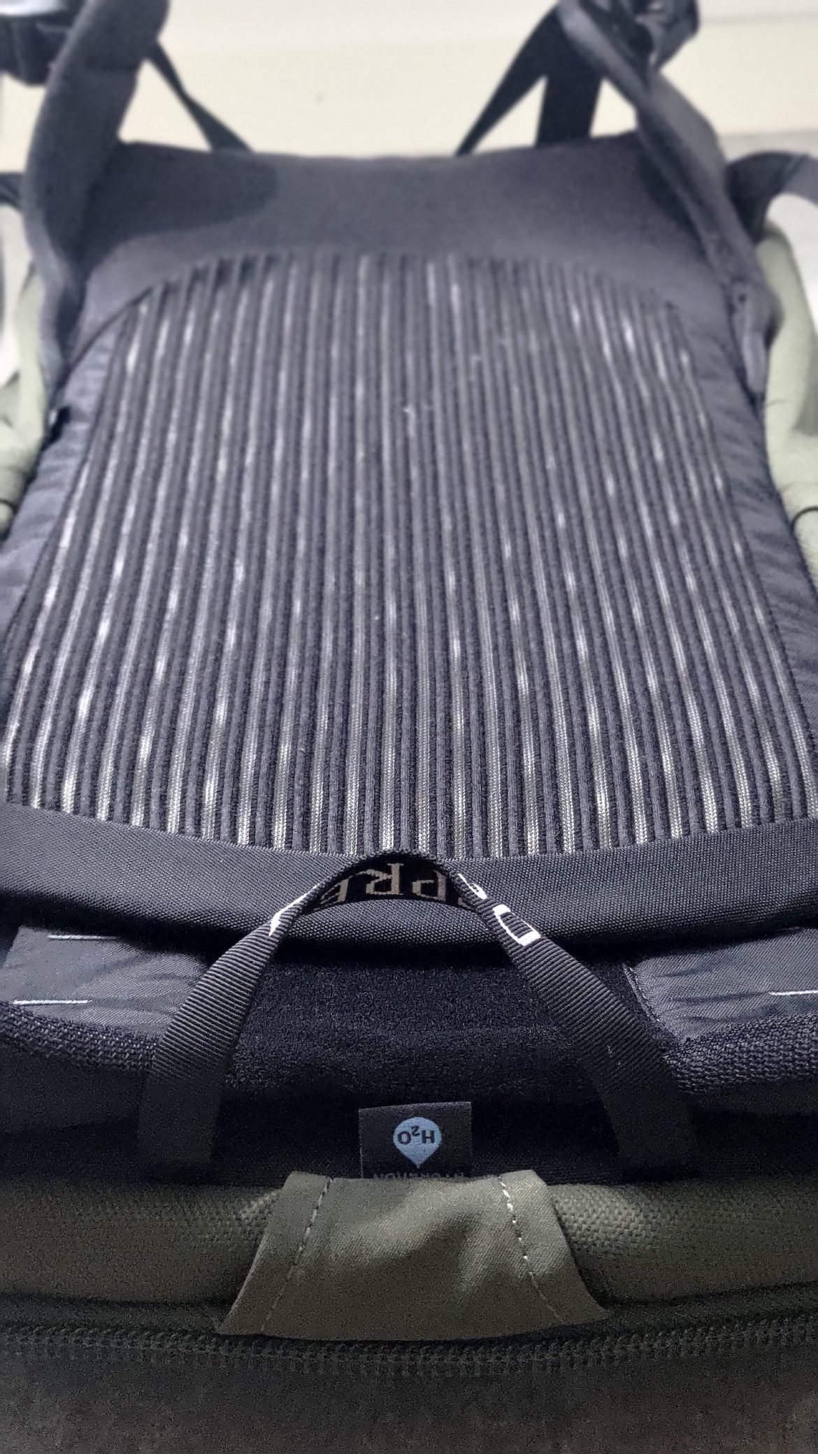 Ospreys AirScape-system tillåter dig att justera ryggpanelen för att passa din höjd. Tre olika ryggsystem finns i Ospreys sortiment och AirScape är det som sitter närmast ryggen för att skapa bättre stabilitet. Ventilation blir därför inte AirScapes starka sida. På utsidan finns även två stretchfickor för vattenflaskor. Slutligen finner du en inbyggd visselpipa på bröstremmen och en midjerem för att få den att sitta kvar där du vill ha den.