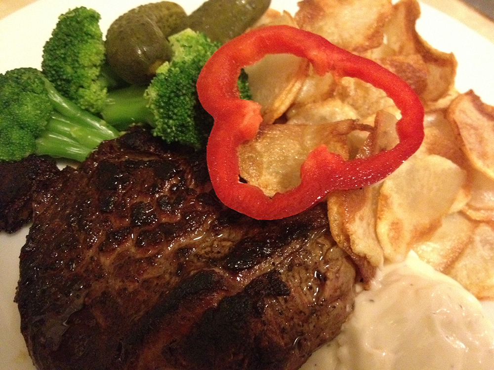 Ta ut 2 st oxfilé-bitar ur kylen en halvtimme innan de ska stekas så att de hinner blir rumstempererade. Torka av dem med hushållspapper och krydda med salt och svartpeppar på båda sidor. Lägg rikligt med smör i en stekpanna och låt det smälta. Lägg köttet i stekpannan och stek på hög värme tills köttsaften blir synlig på den råa sidan (ca 2 -2 ½ min) då är det dags att vända och steka andra sidan lika länge. Skär lite försiktigt i köttet för att undersöka om det fått en fin, ljusrosa färg (tänk på att köttet eftersteks så stek inte för länge).