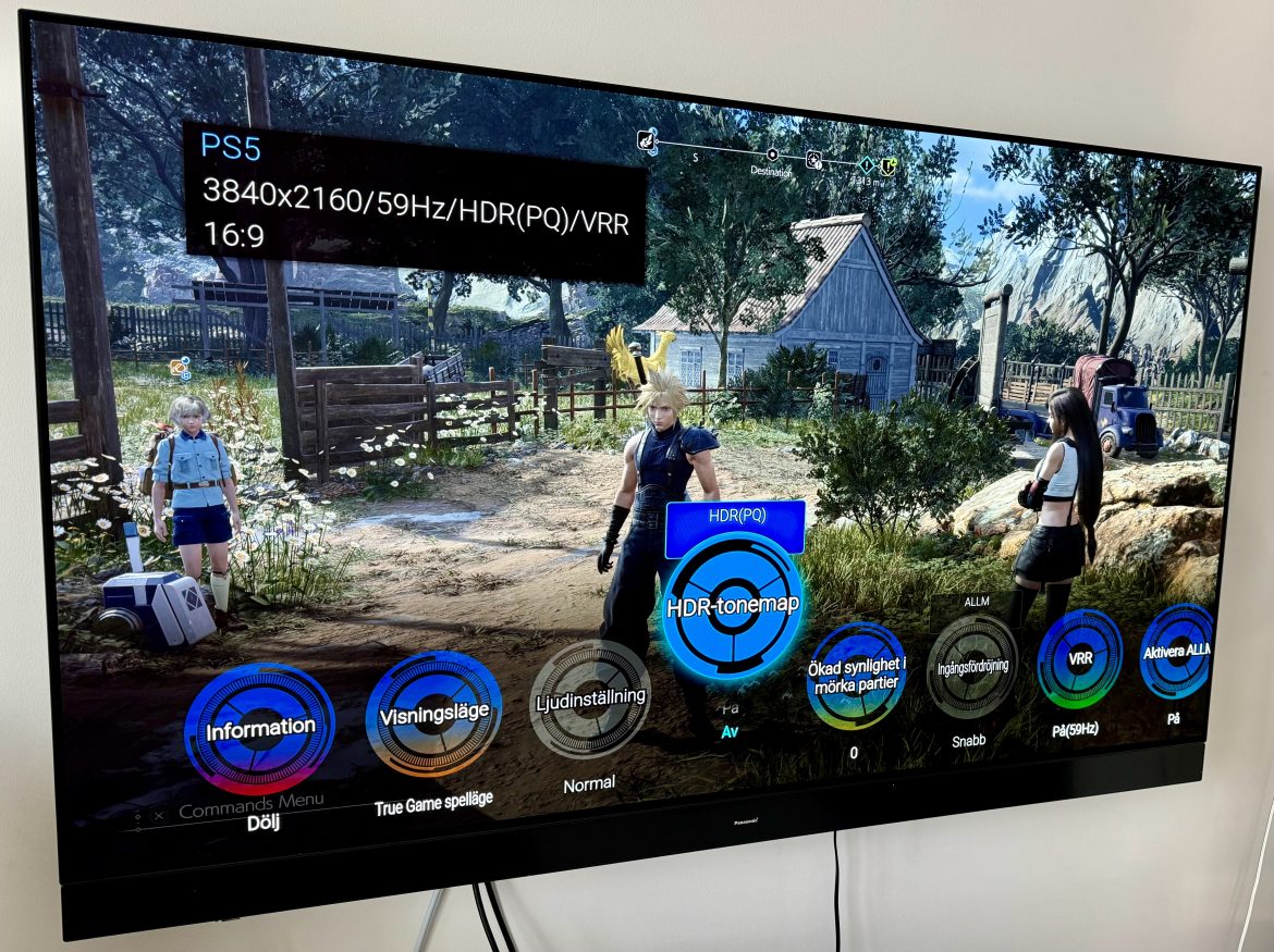 Årets bildpanel är andra generationens MLA OLED-panel (samma som sitter i LGs G4) dock med Panasonics egna videoprocessor (HCX Pro AI MK 2) och mjukvara, som gör denna panels prestanda unik och att den inte direkt kan jämföras med någon av konkurrenterna, trots samma bildpanel i grunden. Uppdateringsfrekvensen är 144 Hz med Dolby Vision påslaget, vilket är bra för nativestöd på PC eller på PS5 utan DV (se bara till att din förstärkare klarar det också, om du kopplar via en sådan). Den teoretiska ljusstyrkan sägs uppgå till 3 000 cd/m2 genom MLA och AI-algorimter för att boosta på denna, i verkligheten landar vi närmare 1 600-1 700 cd/m2 (på 25% av bildytan) vilket ändå är rejält imponerande och påtagligt mycket ljusstarkare än tidigare års modeller som hade måttstocken 1 000. På HDR-sidan har vi fått såväl ”Normal” som ”Dynamic”-lägen, vars uppgift är att lyfta enskilda detaljer och områden. Dolby Vision fått ett Precision Detail läge som genom AI ska ge extra skjuts åt ljus på vissa ytor och likt tidigare generationer så stöds varje tänkbar standard av HDR idag, från HLG till HDR10+ som börjar återkomma, även om Dolby Vision är klart dominerande idag. Likt tidigare år får vi två HDMI 2.1-portar med fullt stöd (denna gång upp till 48 Gbps, vilket tar bort Xbox varning kring 4K, 120 Hz och Dolby Vision) och fyra HDMI-ingångar totalt. Här ligger japanerna Panasonic och Sony efter koreanska tillverkare som LG och Samsung, som erbjuder fyra portar med fullt stöd. Den ena av de två 2.1-portarna som skulle kunna användas till VRR och konsol äts dessutom upp av eARC, som du behöver för att vidarebefordra ljud från olika källor till exempelvis en förstärkare eller soundbar.