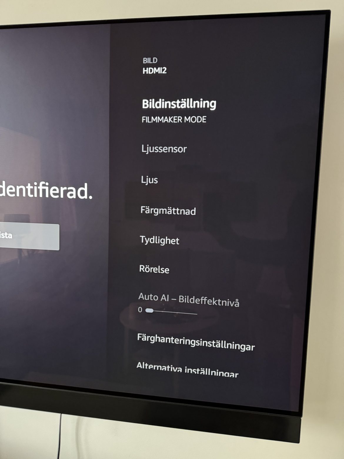 Sidnot: varför en flaggskepps-tv kommer med det bedrövligt felskruvade Standard-läget inställt istället för ex Bio eller Filmmaker mode är ett stort mysterium. Nu kanske konsumenter som köper denna tv är så insatta att det första de gör är att växla, men på samma sätt kan handlare som behöver demo-bilder som ”skriker” mot kunderna växla till något sådant läge. Det borde inte vara standard med Standard.