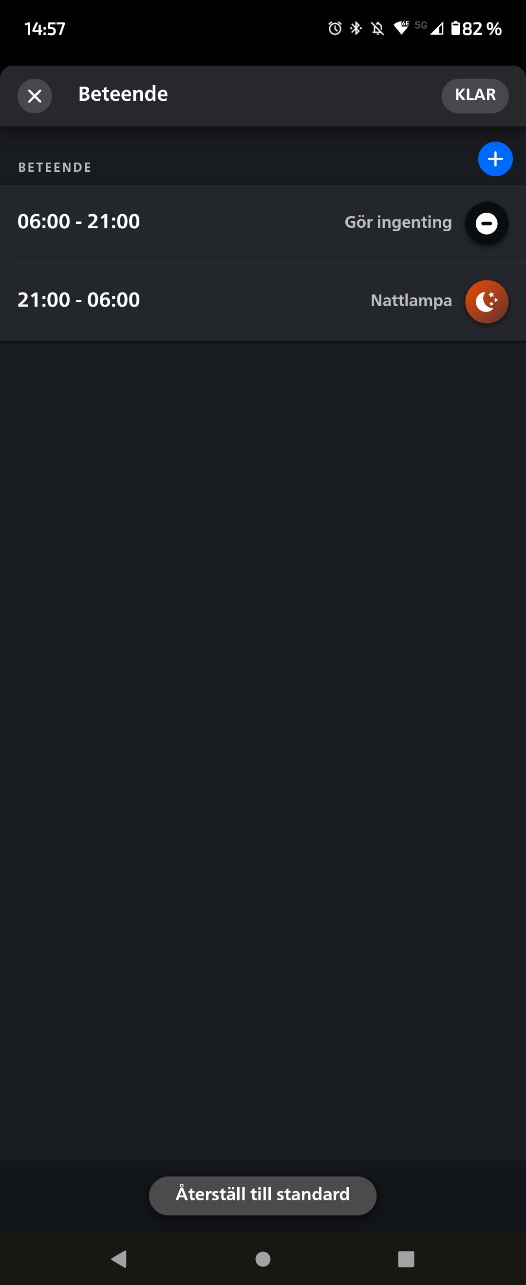 Förutom ovan kan du med hjälp av rörelseregistrering sätta tidszoner för när lampor ska bete sig på ett visst sätt. Exempelvis, mellan 22.00 och 07.00 ska svagt ljus tändas i hallen i 3 minuter, sedan släckas. Du får tvåvägskommunikation, möjlighet att gråa vissa zoner och en massa fler funktioner att ställa in.