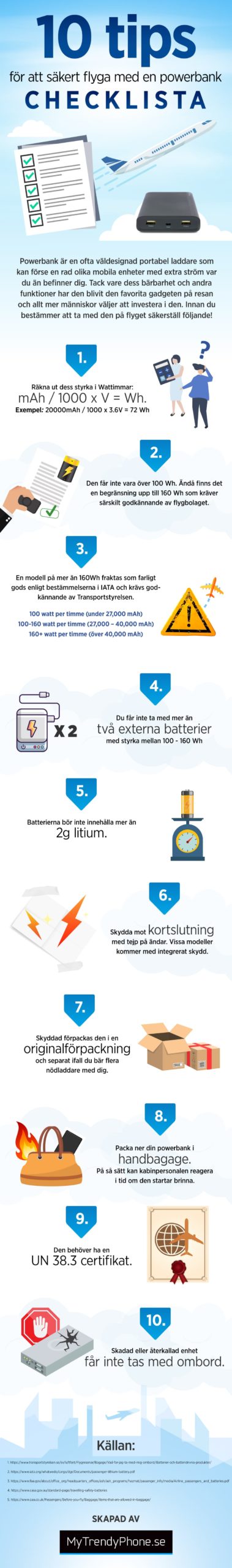 Ja, självklart att du kan ta med den ombord, men du också måste iaktta vissa regler som gäller för farligt gods och batteridrivna produkter som powerbanks nämligen är. MyTrendyPhone har samlat alla dessa regler i en kort infografik som du också kan kolla här.
