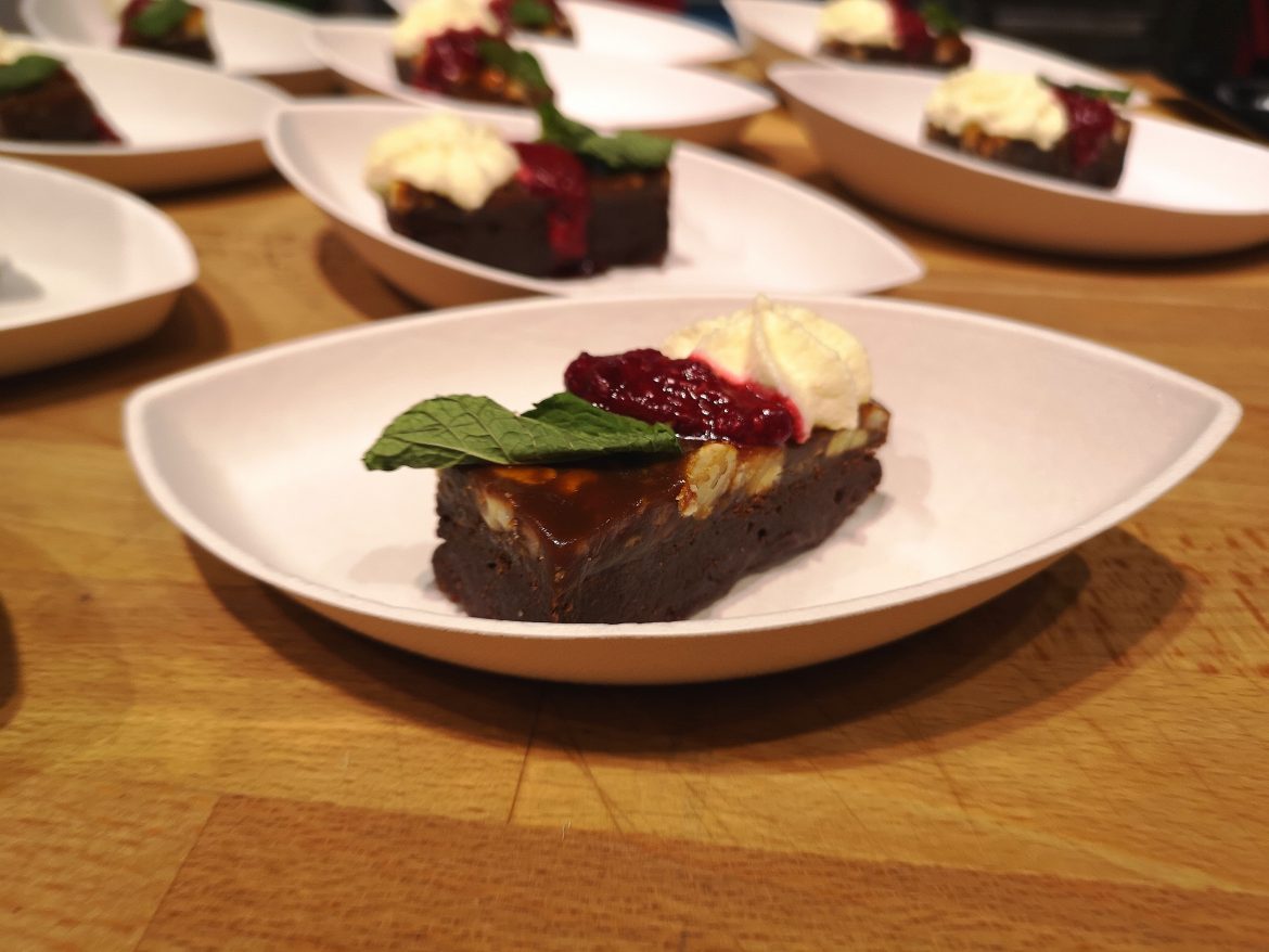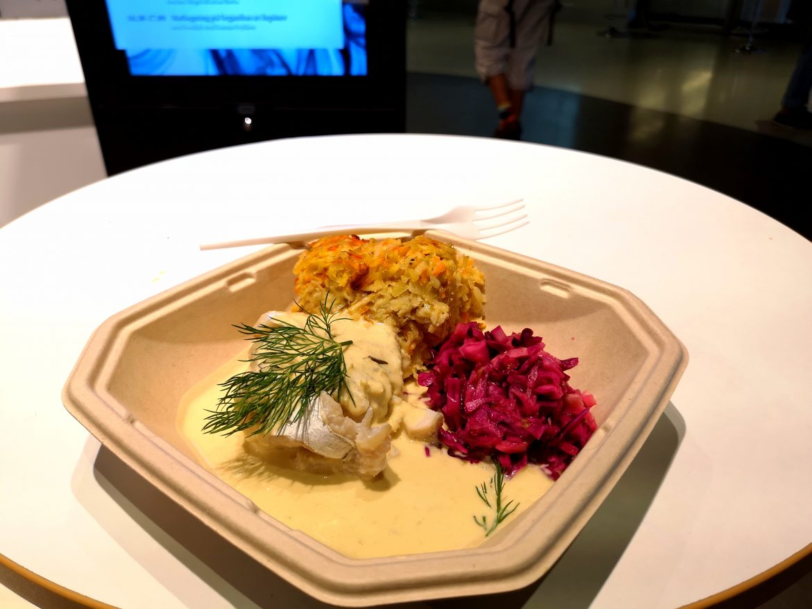 Tillbaka till mässan. Väl framme började jag direkt med att hugga in på provsmakning och det blev en god torsk med en rotfruktskaka och en syrlig sås med en rödkålssallad. En liten dessert gled ned också; en mycket god chokladkaka toppad, med ett täcke av kola och valnötter samt en björnbärskompott.