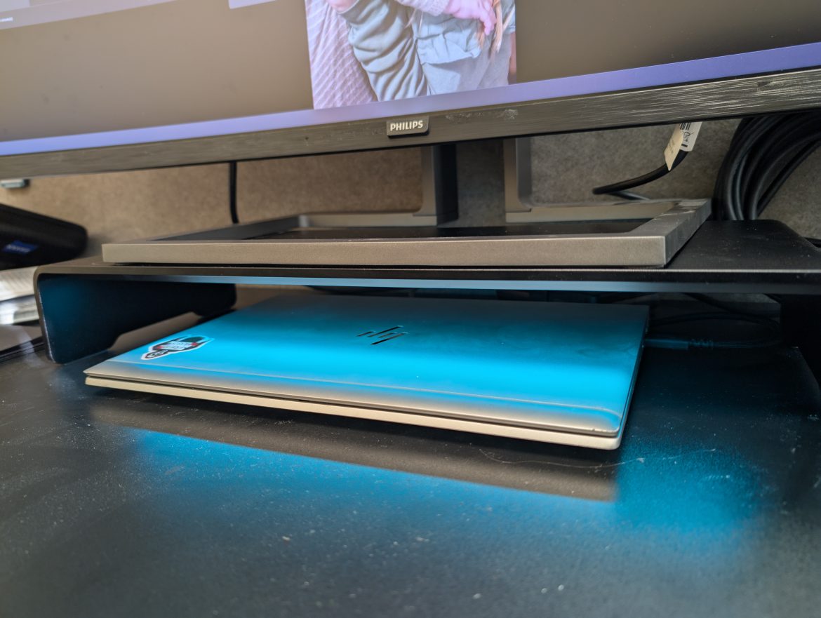 Jag konstaterade ganska snabbt att Chroma är utformad för stationära datorer. Missförstå mig rätt – den går att använda till laptops också, vilket är så jag har testat den. Däremot hade jag hoppats att den skulle fungera mer som en dockningsstation. När jag kopplade in den till min laptop behövde jag plötsligt en extra HDMI-kabel för att det skulle fungera. Det gjorde mig lite perplex, då jag inte använt en HDMI-kabel till min laptop på flera år, utan enbart kört USB-C. Det var lite tråkigt, särskilt eftersom laptopen smidigt får plats under stället. Så bara för att lätt förklara vad som krävs med en laptop för att kunna utnyttja stället som det är tänkt så behöver jag laddaren för att batteriet inte ska dö USB-C från datorn till stället för att få fram ström och HDMI från stället till skärmen för att få bild. Det jag försöker säga är att det i slutändan blir ganska meckigt.