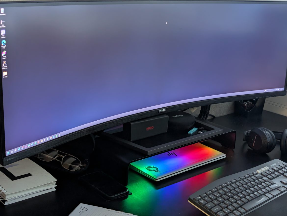 Sammanfattningsvis måste jag säga att detta är en ganska praktisk produkt, som dessutom kan ge dig många timmars sysselsättning med att schemalägga belysningsscenarion. Samtidigt får du ett lite mer städat skrivbord som lyser i häftiga färger, då monitorn kommer upp en bit och skapar utrymme för saker både under och (beroende på monitorstorlek) ovanpå stället.