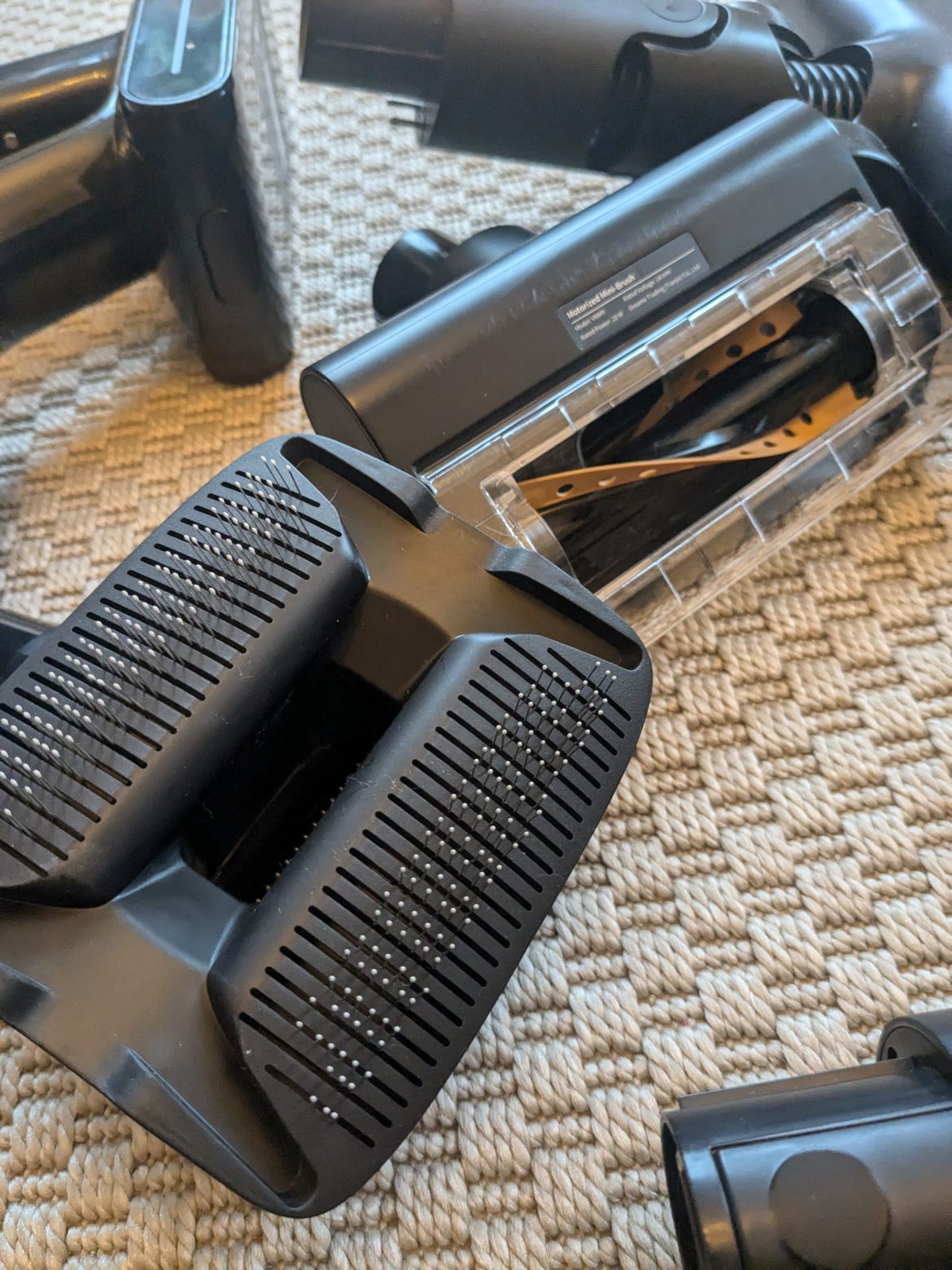 Z30 suger bra ända in till vägglisterna med standardmunstycket men inte riktigt hela vägen in i trånga hörn. Vidare så blev vi dessutom positivt överraskade av hur användbar upplysningen från själva munstycket faktiskt var. Man såg ALLA dammkorn på golvet och därmed blev det också väldigt enkelt att veta var man redan hade dammsugit, det minimerade dubbeljobb helt enkelt. En annan, nästintill magisk, egenskap hos Z30 är att inga långa hårstrån fastnar i borsten i munstyckena! Ja du läste rätt, inte ett enda hårstrå under hela vår testperiod fastnade i munstycket! Vår stackars Roborock ropar vanligen på hjälp efter 10 minuter då för mycket hår trasslat in sig i borsten. För er med långhåriga familjemedlemmar (av både tvåbenta och fyrfota varianter) är detta en gudagåva!