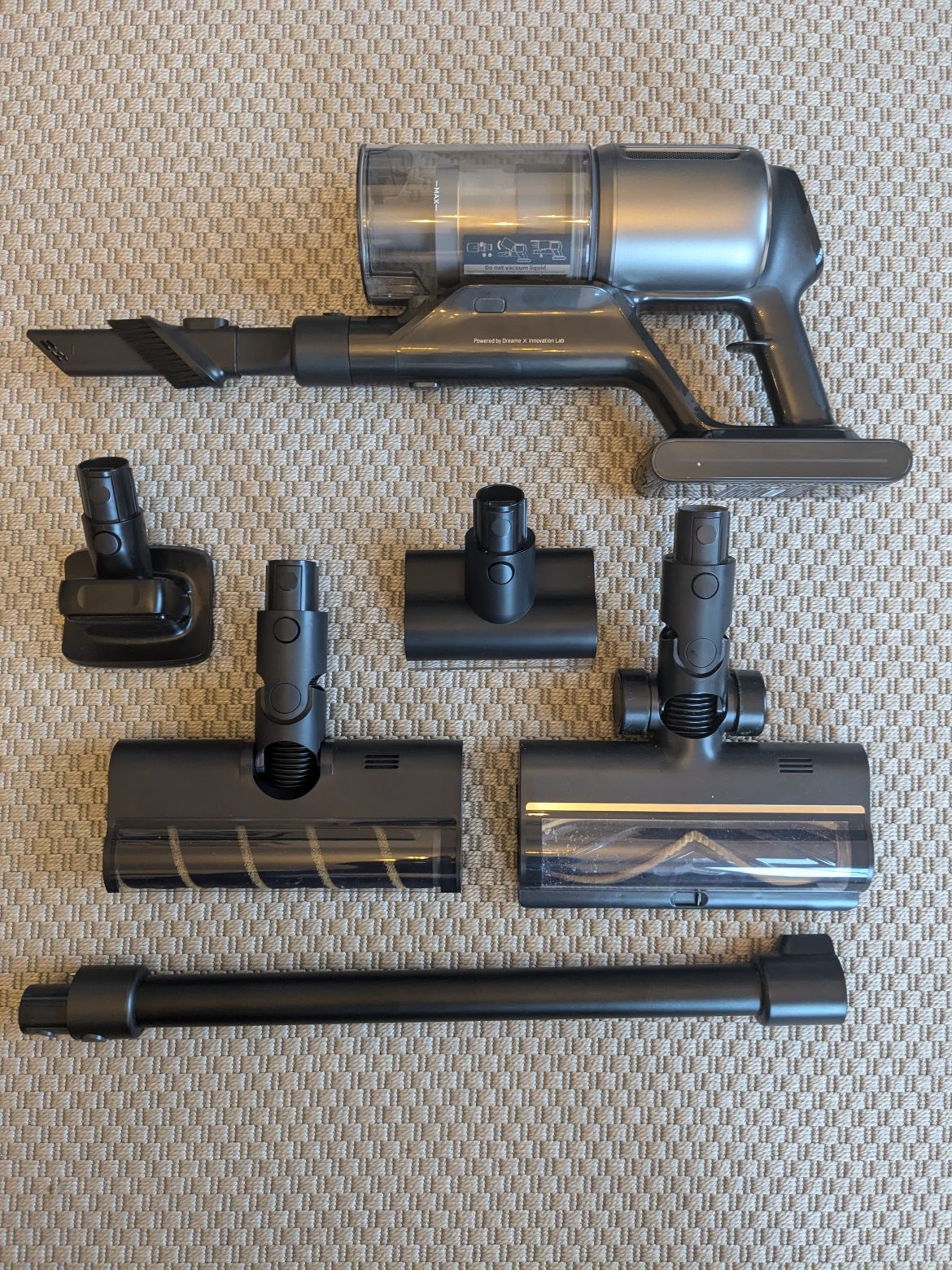När vi öppnar lådan som Dreame Z30 kommer i slås vi av hur många olika tillbehör och prylar som följer med. Allt från munstycken för att dammsuga pälsdjur, komma åt på krångliga platser till textilrengöring. Utöver detta följer det även med ett praktiskt ställ för själva dammsugaren samt några utvalda tillbehör. Det är ganska skönt att slippa behöva väggmontera en laddstation men ändå kunna få en snygg dedikerad plats för dammsugaren. Tyvärr var den medföljande laddarens kabel lite för kort, här hade det varit bra om den hade varit generisk så att man själv skulle kunna införskaffa en längre sladd.