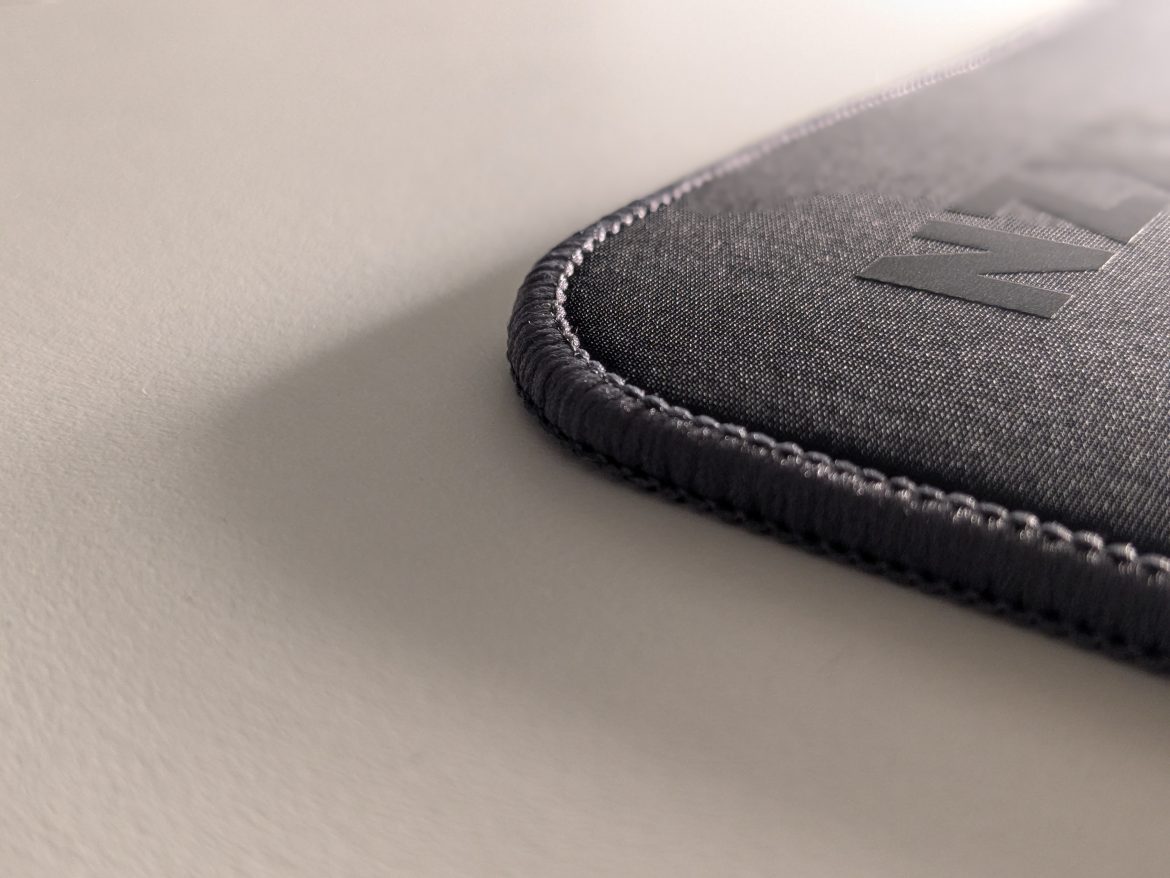 Vi öppnade paketet som NZXT Zone Elite kom i och väntade oss ännu en generisk svart tygbit men oj så fel vi hade. Musmattan kom i en egen snygg bärpåse. När vi väl rullade ut mattan på skrivbordet kändes det lyxigt och högkvalitativt. Zone Elite är gjord av ett material som är svårt att beskriva – Närmast är nog känslan av en alldeles ny våtdräkt. Den är len som en barnrumpa och känns nästan friktionslös.