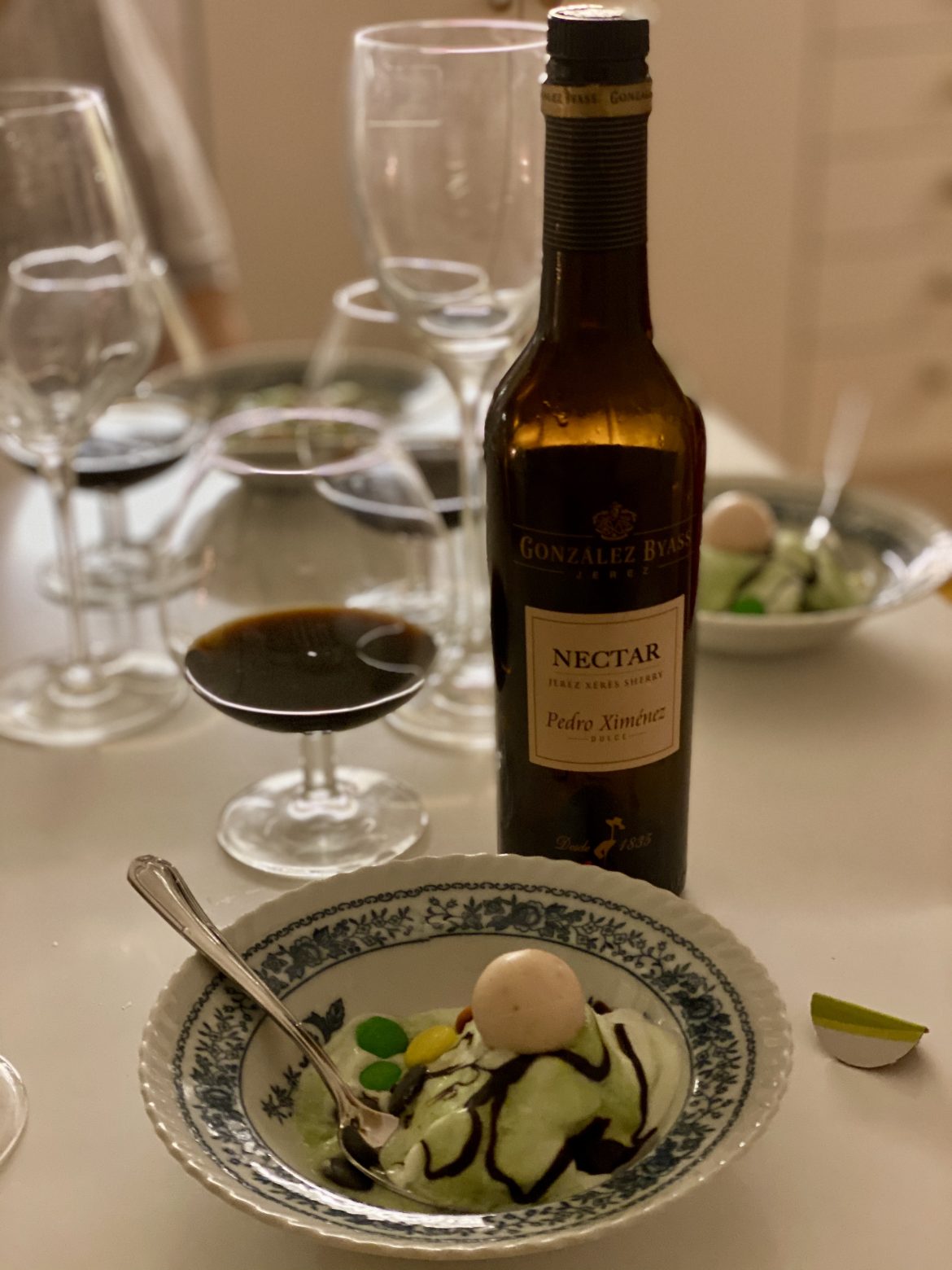 Till denna söt-salta gomupplevelse serverar vi lite välkyld Nectar Pedro Ximenez (375 ml, 15%, 90 kr på bolaget), en helt purfärsk sherry i Systembolagets sortiment – från ursprungsregionen Jerez, skapad på soltorkade Ximenez-druvor som skrumpnat precis till den grad att man fortfarande kan pressa must ur dem och få den renaste och sötaste nektarn. Ett måste att prova välkyld, eller varför inte med en god portion glass för att fira att arbetsveckan drar igång på tisdag?