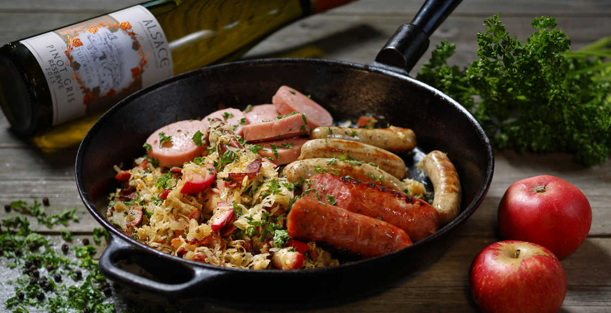 Dryckestips till maträtten: Turckheim Pinot Gris Réserve 2015, 75 cl, 95:-. Ett torrt och fylligt vin med typisk friskhet för druvan och aromatisk karaktär av aprikos och honung med lång eftersmak. Historiskt har Alsace långa tider tillhört Tyskland varför bönderna i regionen har tradition av att odla druvsorter som normalt associeras med Tyskland snarare än Frankrike. Riesling är en av dessa specialiteter som går att finna i Alsace och knappast liknar något annat vin i världen. Trots sitt nordliga läge har Alsace ett mycket varmt klimat, vilket i kombination med de aromatiska druvsorterna ger unika viner med både kraft och elegans.