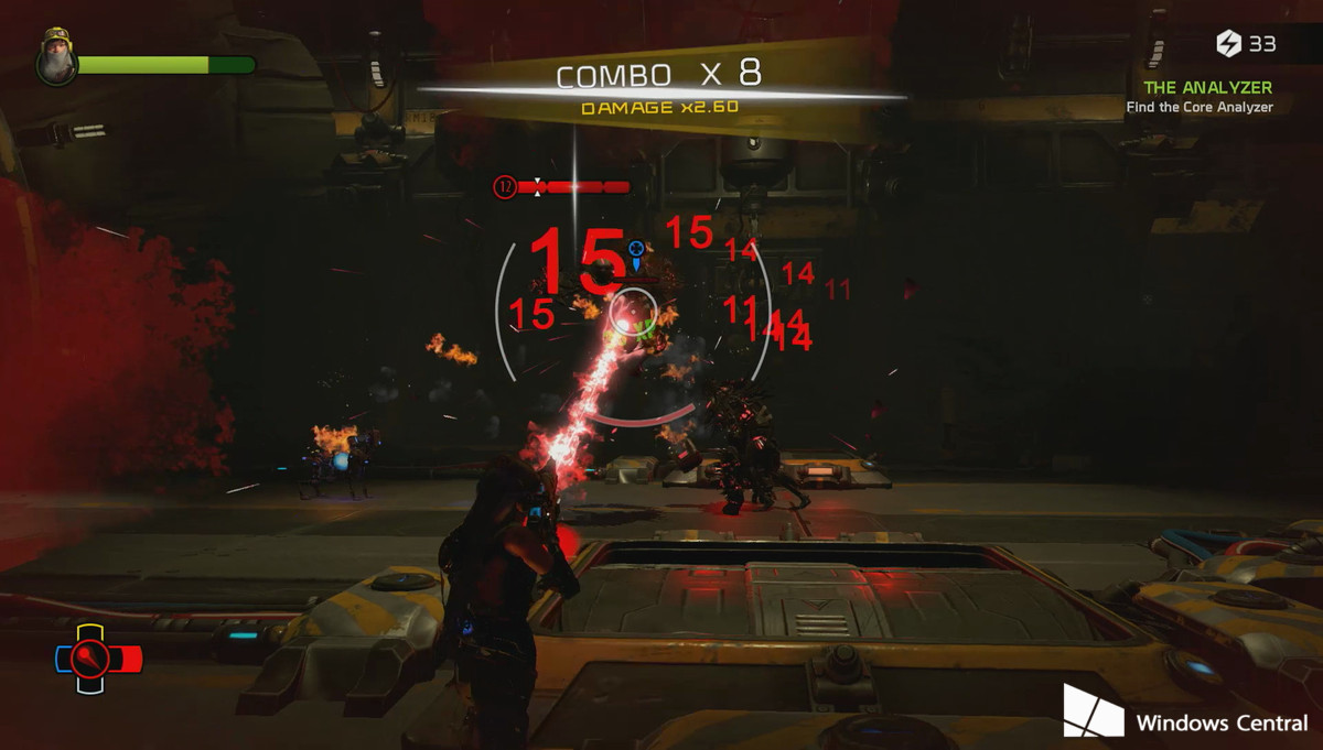 ReCore kan enklast beskrivas som ett actionäventyr i tredjeperson, som lånar friskt ifrån de bästa i genren. Äventyrandet och, till viss del, skjutandet från Uncharted, den apokalyptiska tonen från Mad Max och delar av rörelsemönstret från … ja, Mega Man, med dubbelhopp och dashing. Men det intressanta är att den glättiga mixen faktiskt funkar alldeles utmärkt! ReCore går fort att komma igång med och att lära sig spela. Det är också givmilt med information och quest-markers och svårighetsnivån ligger åt det generösare hållet, även om utmaningen givetvis vrids upp allteftersom äventyret fortskrider (för att bli riktigt svårt mot slutet!). I vanlig ordning finns fiender av olika slag med olika element och styrkor/svagheter som du kan läsa om i en bestiary (där fick vi in lite Witcher 3 också) och varje bana avslutas med en lite mer utmanande boss. Spelet autosparar och du behöver sällan göra om särskilt mycket om du dör, men laddningstiderna är tyvärr väldigt långa, något vi hoppas att man patchar upp lagom till release.