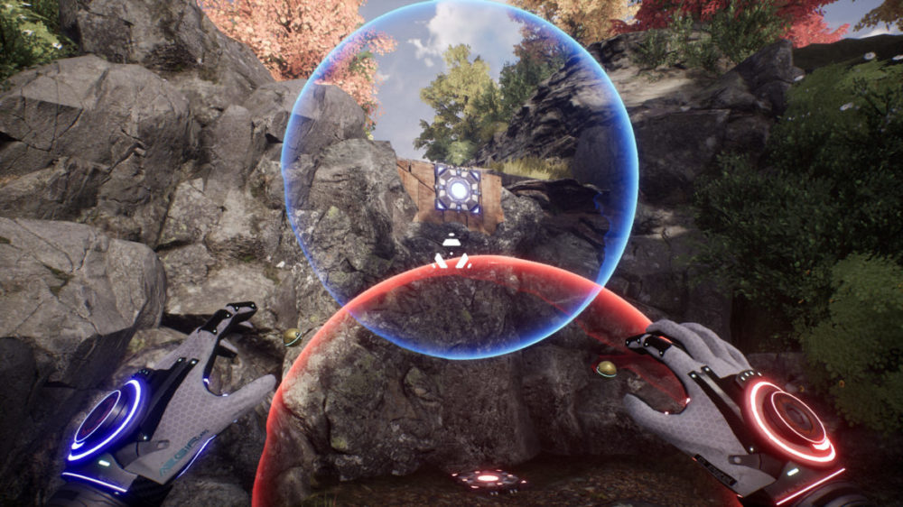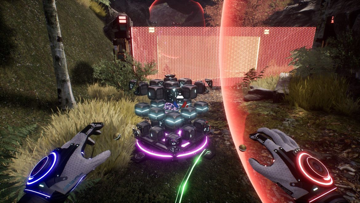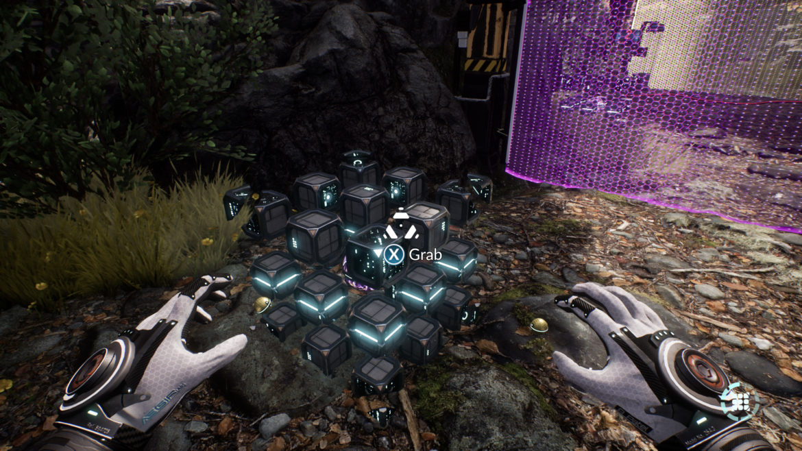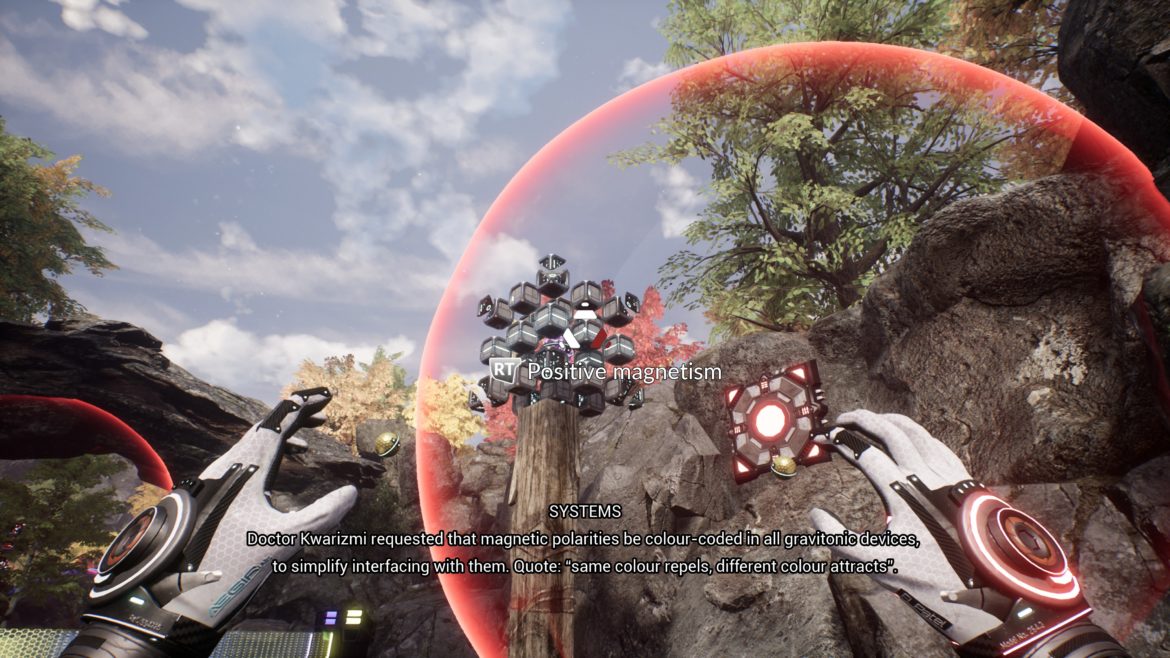 Relicta är ett spel som jag väldigt lätt kom in i. Som sagt; mekaniken påminner om vissa delar i Portal – till exempel har man kuber som man ska flytta på, lägga tyngd på tryckkänsliga plattor för att kunna ta oss till nästa sektion och så vidare. Fast istället för portaler har vi två olika kraftfält att jobba med som antingen drar ihop kuberna eller stöter dem ifrån varandra. Och så har vi teleportörer. Du har ett begränsat antal kuber för varje uppgift och det gäller att använda dem på rätt sätt och i rätt ordning. Det är inte helt lätt och det är både en och två gånger som jag verkligen fick klia mig i huvudet för att lösa uppgiften.