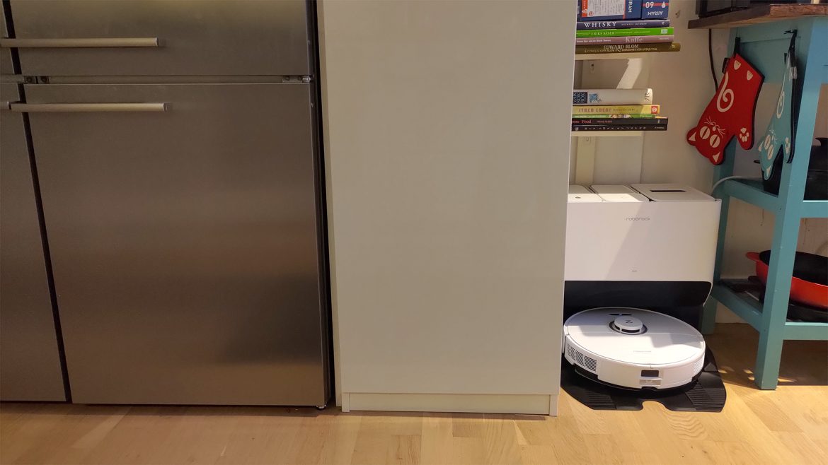En styrka med S8 är att den är synnerligen diskret och lätt kan gömmas undan. Lite beroende på hur ditt hem ser ut kan detta ha en stor betydelse då S8 Pro Ultra kommer med ett eget litet ”hem” som faktiskt kräver sitt utrymme. Dockan har fått ett renare utseende än sin föregångare Roborock S7 Pro Ultra då den nu är täckt vilket gör att den smälter in bättre. Framför allt om du råkar ha vita eller gråsvarta skåp i ditt kök. Precis som föregångaren består dockan av en utbytbar dammsugarpåse för uppsamlad smuts, en behållare för påfyllningsvatten för moppning samt avfallsvatten efter städning av densamma.
