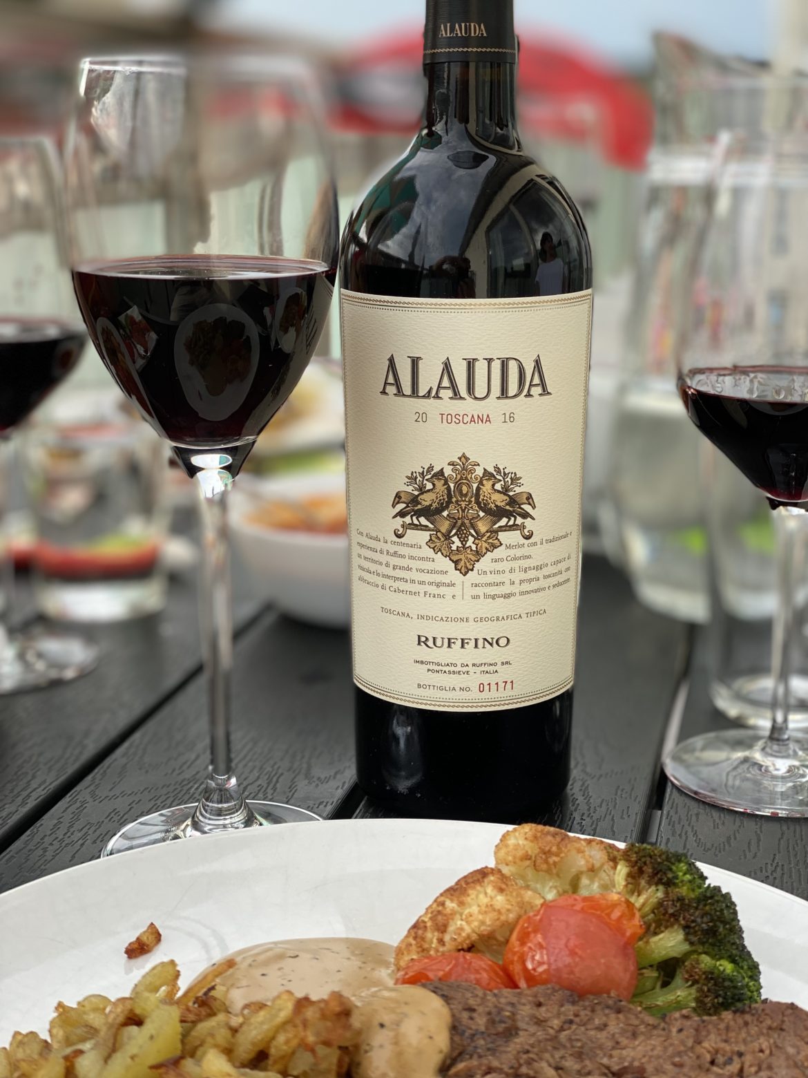 Vinet har en blodröd färg och direkt ur flaskan en djup och mustig smak. Fyllig och kryddig, så för det nästan tankarna till kraftfulla italienska viner som Amarone. ”Barock” är också en första tanke, man riktigt hör italiensk barockmusik spela när man dricker det. Smaker av mörk choklad, mogen frukt, körsbär med eukalyptus och rostat kaffe. Paletten är imponerande, de väldigt mogna bitarna (Merlot) och strukturen från Cabernet ger dig här något extra tillsammans med Sangiovese. Passar mycket bra till en mer kraftfull måltid, en vildsvinsragu, en kraftfull risotto eller kanske grillat kött? Vi åt den med rödvinsmarierad rostbiff och det var en majestätisk upplevelse – mjukt och runt, sött och lent. Flaskan kostar förvisso en slant, men detta är ett underbart vin att fira med, ”som att kliva på en vacker matta i ett ståtligt hem”, uttryckte en i panelen upplevelsen. Det påminner också om riktigt bra amerikanare, men med högre finess. Ett måste.