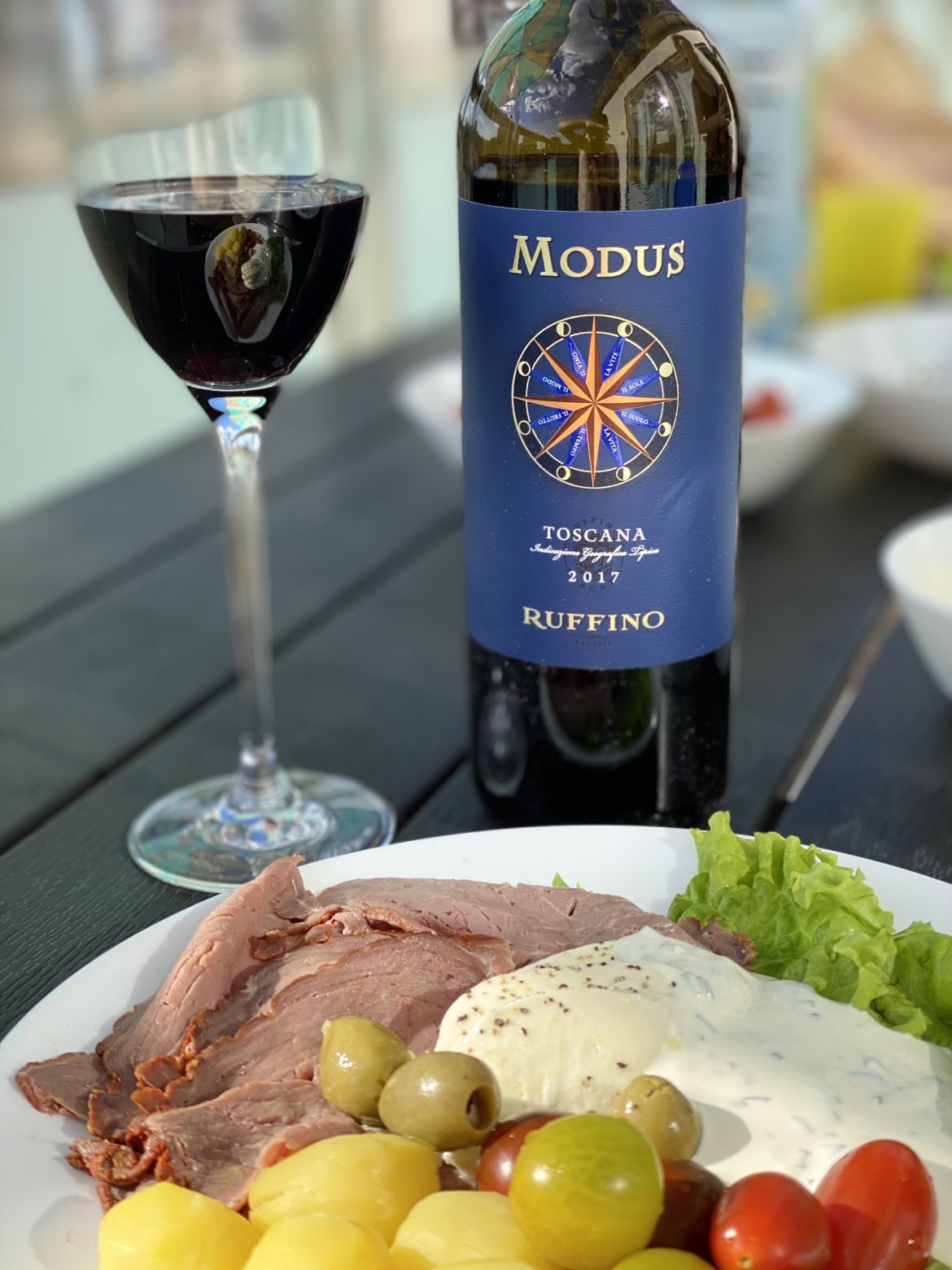 Modus är något som kallas för en Supertoscanare och är något som måste upplevas. Namnet står för en serie viner som valt att lämna den striktare, lagstadgade DOCG/DOC-märkningen till förmån för IGT (Indicazione geografica tipica, eller VdT – vino da tavola, ”bordsvin”) och på så vis gå runt reglerna för hur stor andel av vilka druvsorter man måste använda vid framställningen. Franska druvan Cabernet Sauvignon spelar en avgörande roll här och Supertoscanare anses överlag har mycket hög kvalitet men också ett betydligt högre pris, vilket så även är fallet här. Blandningen i Modus är Sangiovese, Cabernet och Merlot i nästan lika stora delar, med tolv månaders lagring.