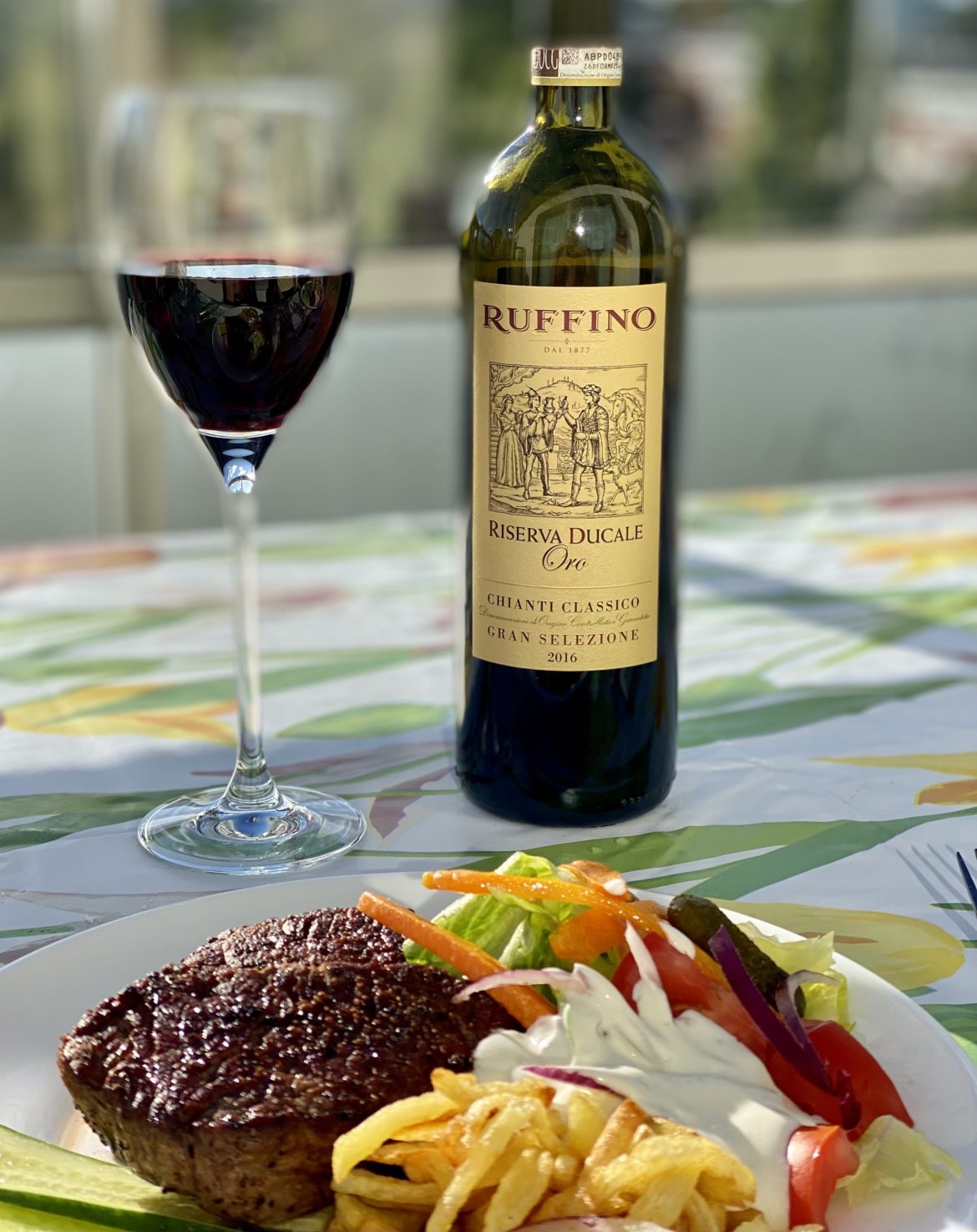 Marken där dessa viner produceras är unik, stenarna är porösa och höjdskillnaden kan vara så mycket som 500 m i odlingarna. Detta är ett av Ruffinos flaggskeppsvin, 85% Sangiovese, 4% av den kryddiga druvan Colorino samt cirka 10% Merlot. 36 månader lagring, ett år i stora tunnor och två år till i mindre. Doften fångar oss direkt; mustigt, kryddigt med slånbär och frukt. Strävt och fullt av personlighet i första klunken. Jättefin syra. Här får vi choklad med torkad tobak och aprikos, levande tanniner men samtidigt mjukheten från Merlot. Riserva Ducale Oro går alldeles utmärkt att lagra. Det passar bra med ett ganska brett urval mat, framförallt kött, fisk, och rätter med syrlighet från tomatsås – ja, helt enkelt italiensk mat överlag. Ett kraftfullt och smakrikt vin, som inte tar över utan höjer maten.